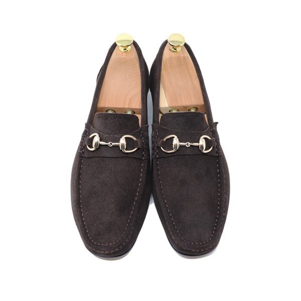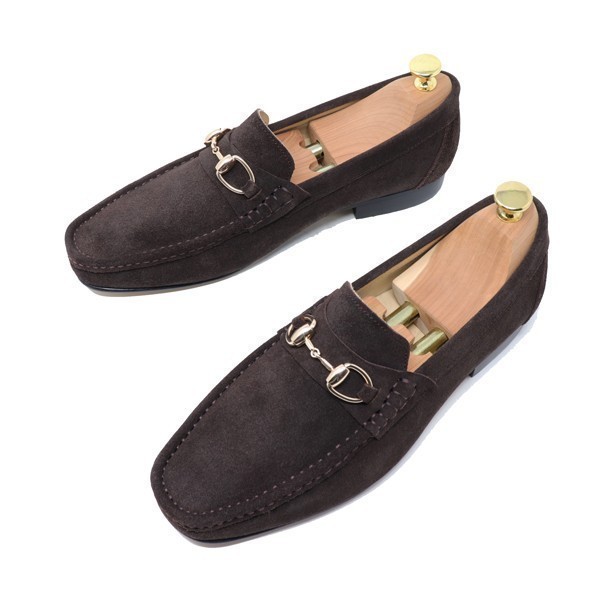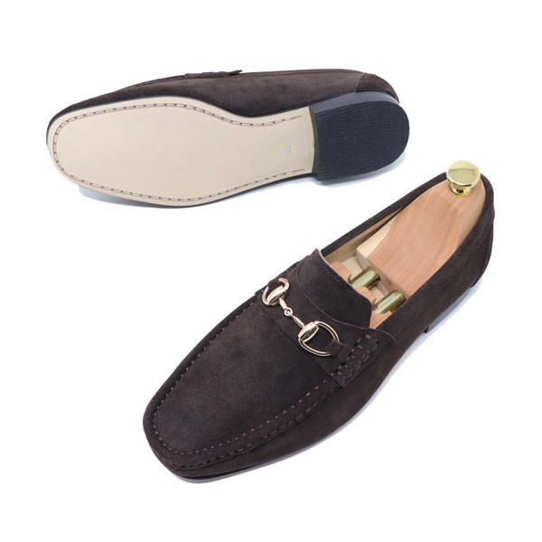 メンズ 25.5cm 本革 スエード ビット ローファー スリッポン ハンドメイド マッケイ製法 ビジネス カジュアル ダークブラウン 靴 S831