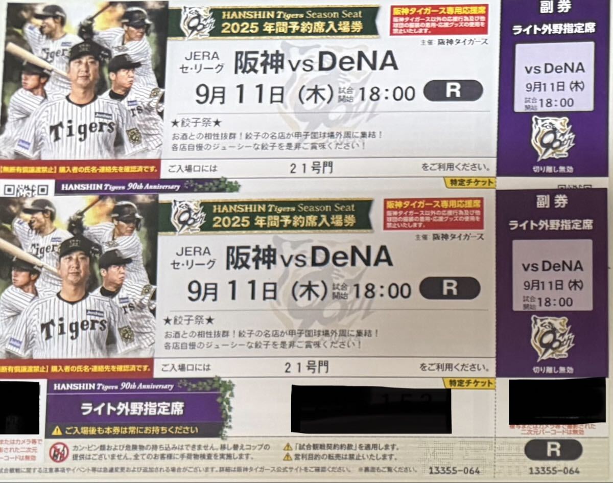 ○阪神タイガース専用応援席につき他球団のユニフォームの着用や応援グッズの使用等は禁止されております。