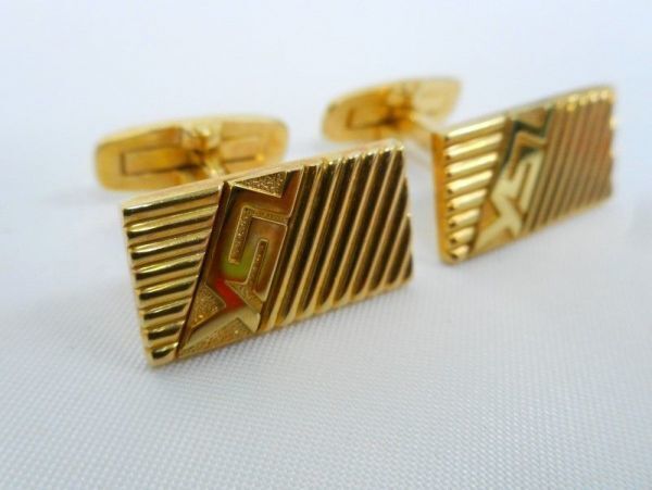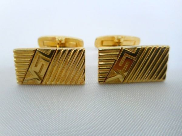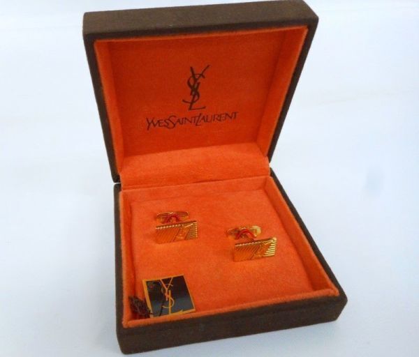 イヴサンローラン YSL カフス ロゴ×ストライプ スクエア ゴールド T-229