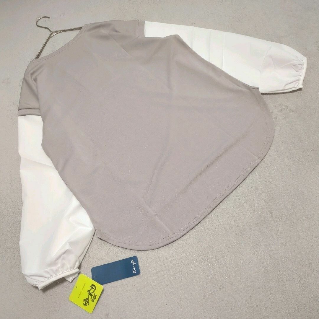 状態→新品タグ付きです。目立った汚れ傷なしで綺麗です!両そではブラウス素材、身頃はカットソー素材です
