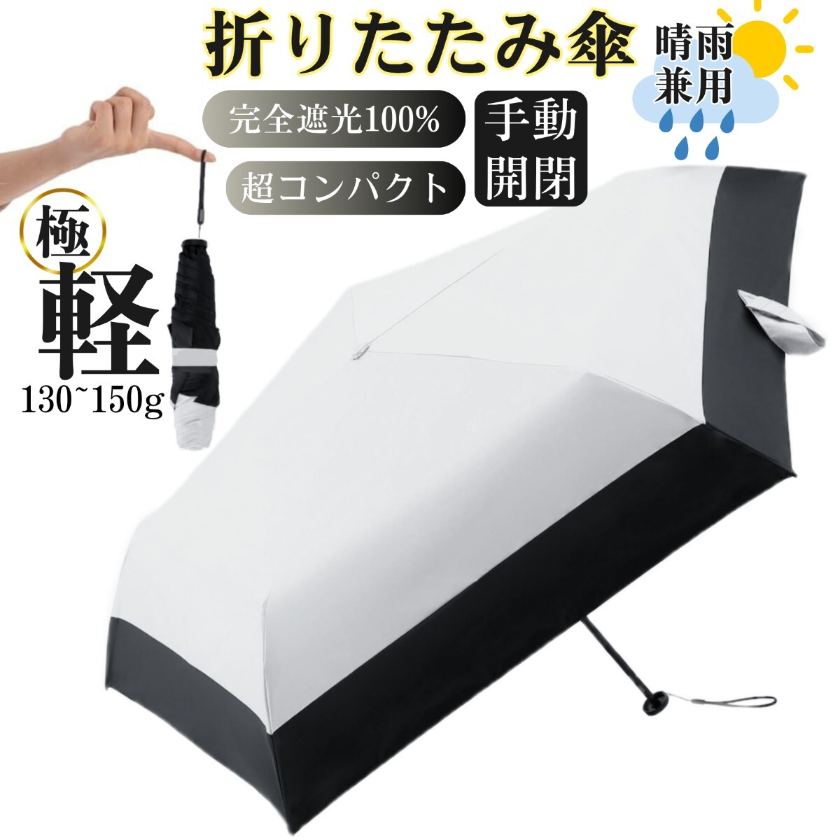 日傘 折りたたみ傘 超軽量 130g-150g 折り畳み傘 uvカット 100% 遮光 折り畳み コンパクト 小さい 最高レベルの紫外線対策 日焼け防止 遮光遮熱 耐風撥水 晴雨兼用 携帯便利 収納袋付き