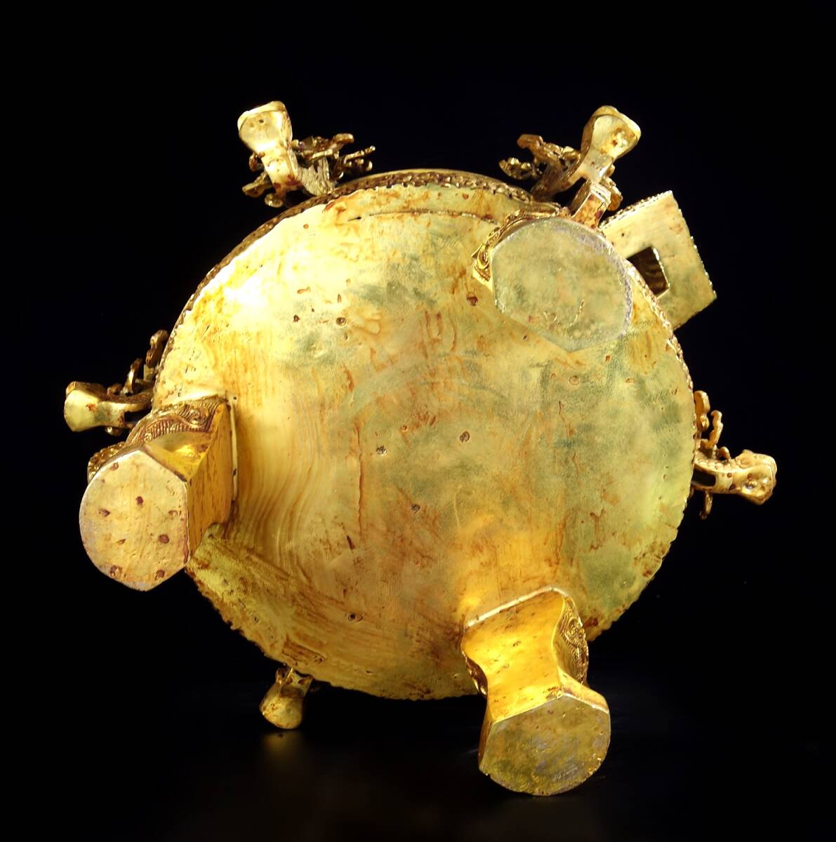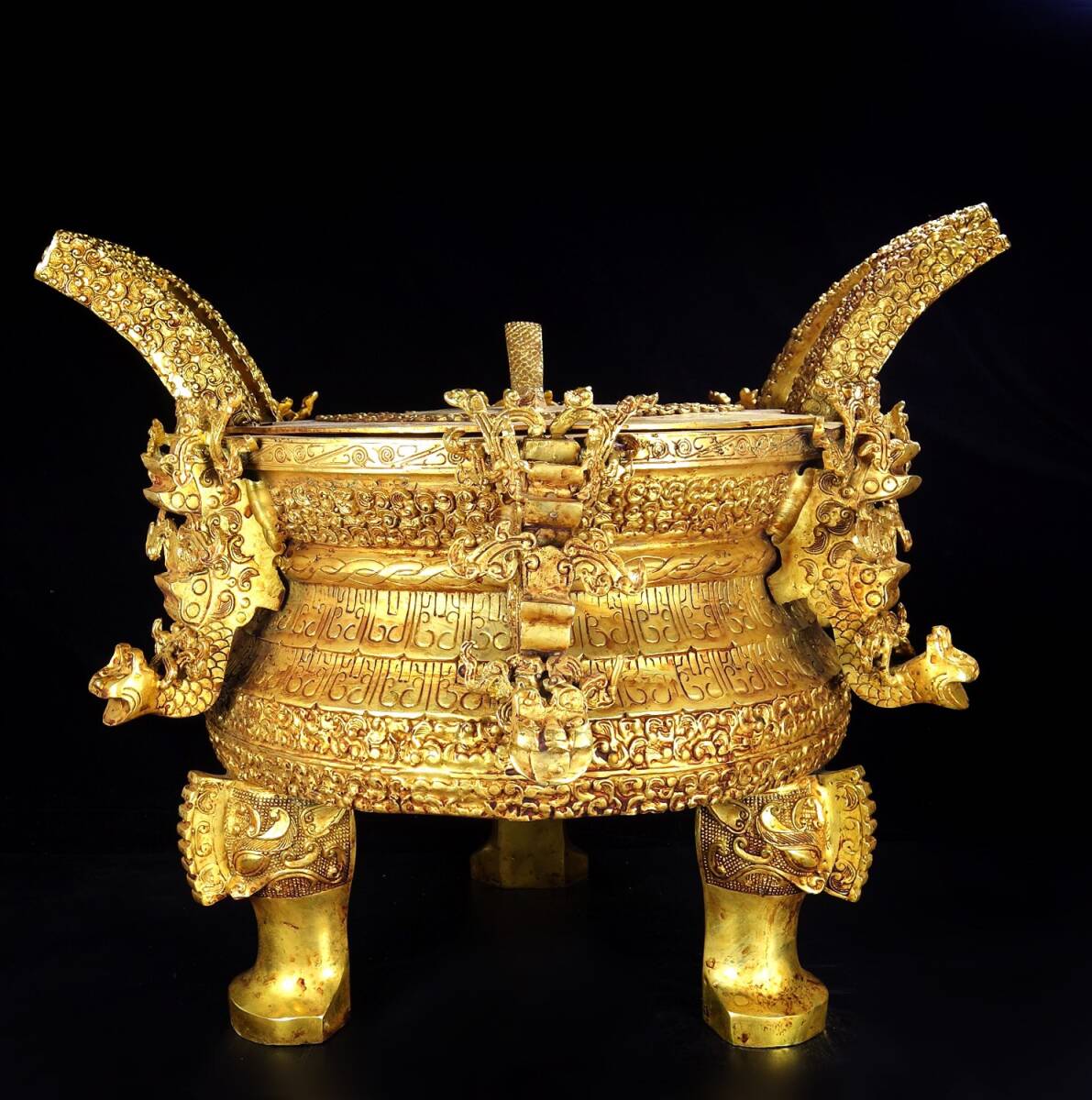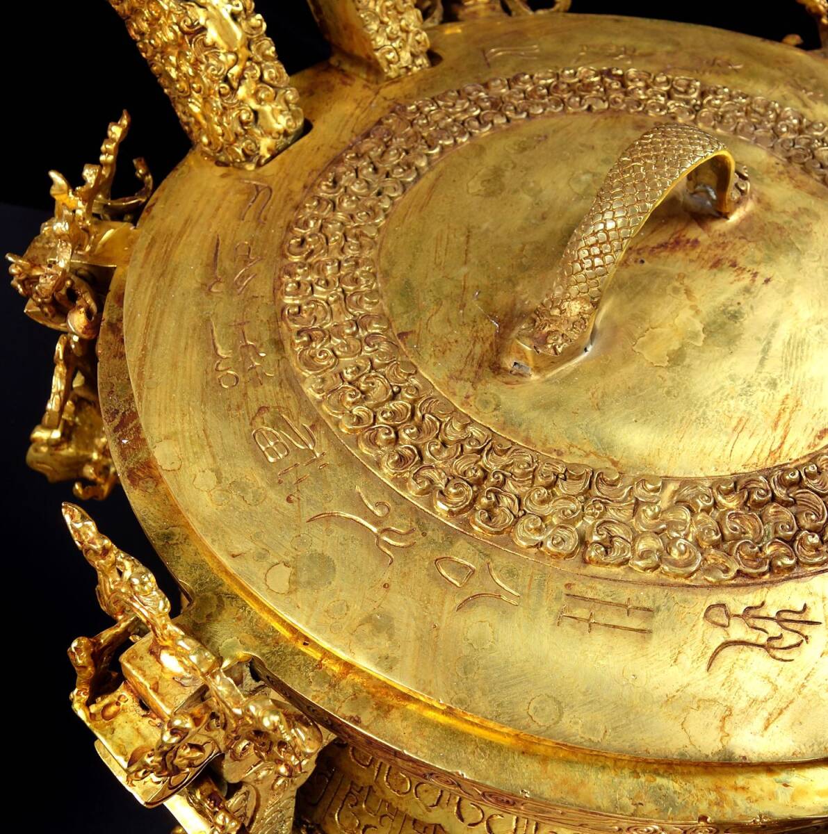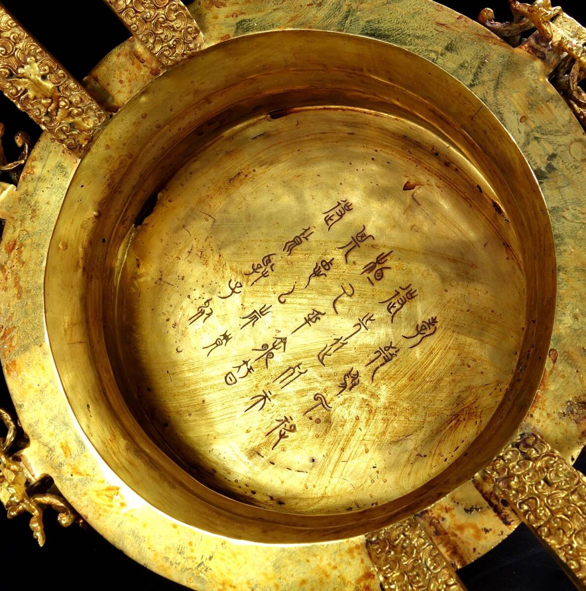 唐物 戰漢時期 塗金銘文 三足鼎 銅製品 銅器 極細工 中国古玩 骨董品 古美味 D68