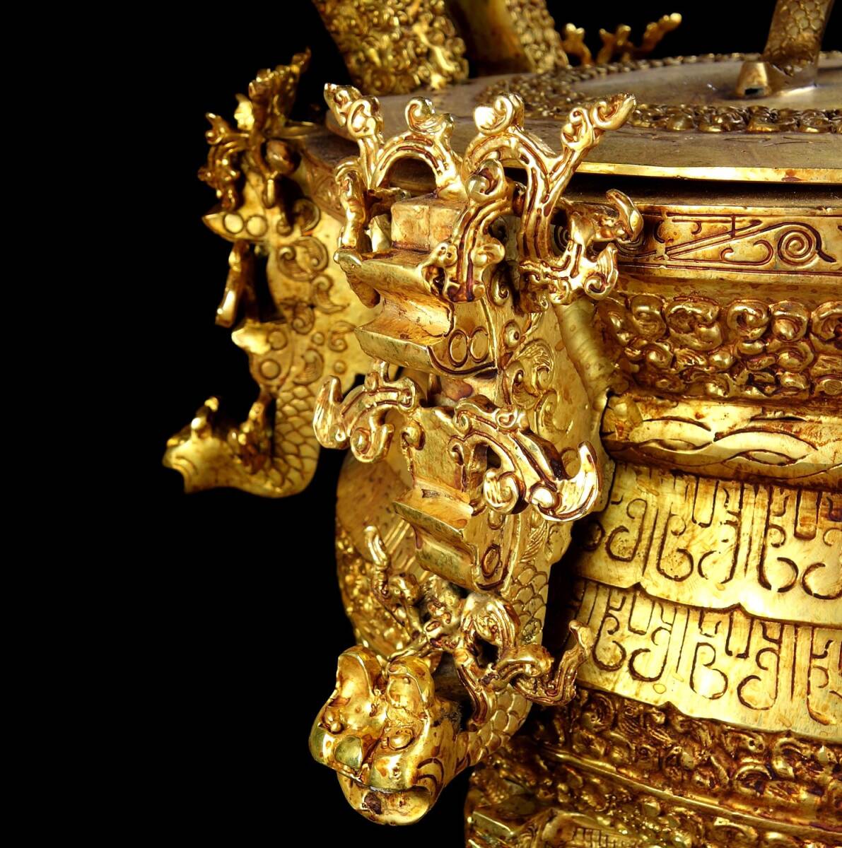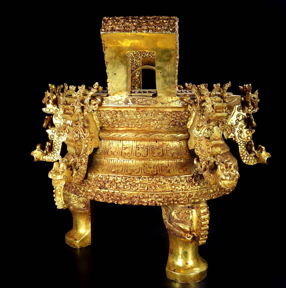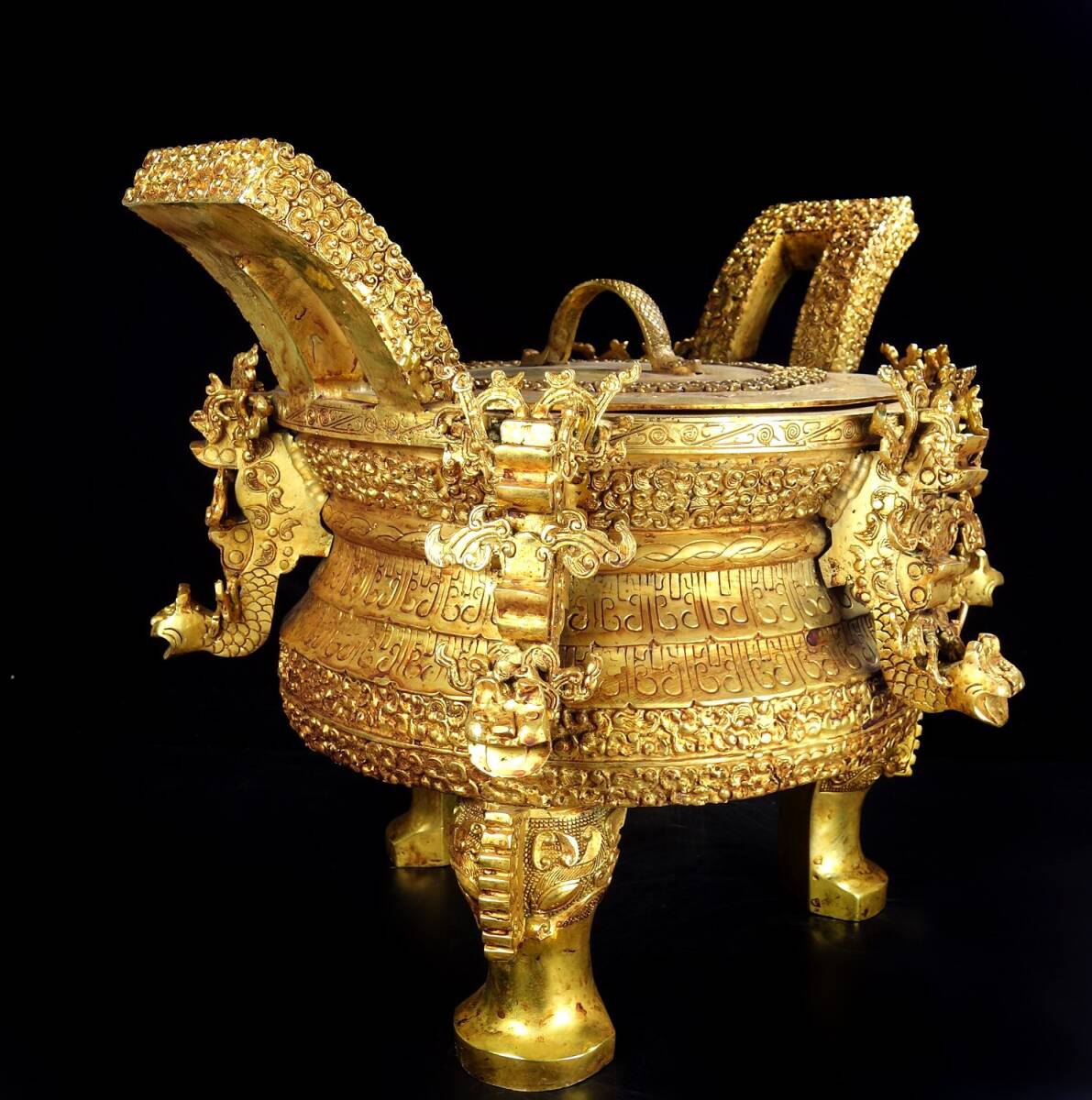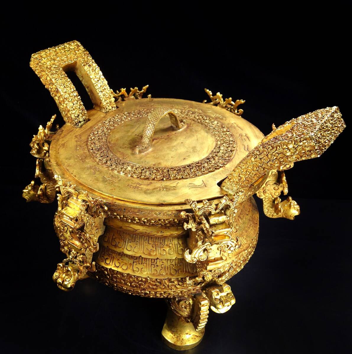 唐物 戰漢時期 塗金銘文 三足鼎 銅製品 銅器 極細工 中国古玩 骨董品 古美味 D68