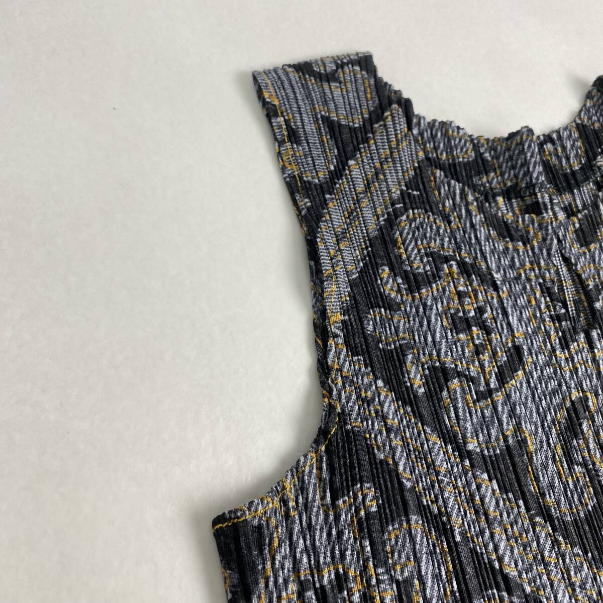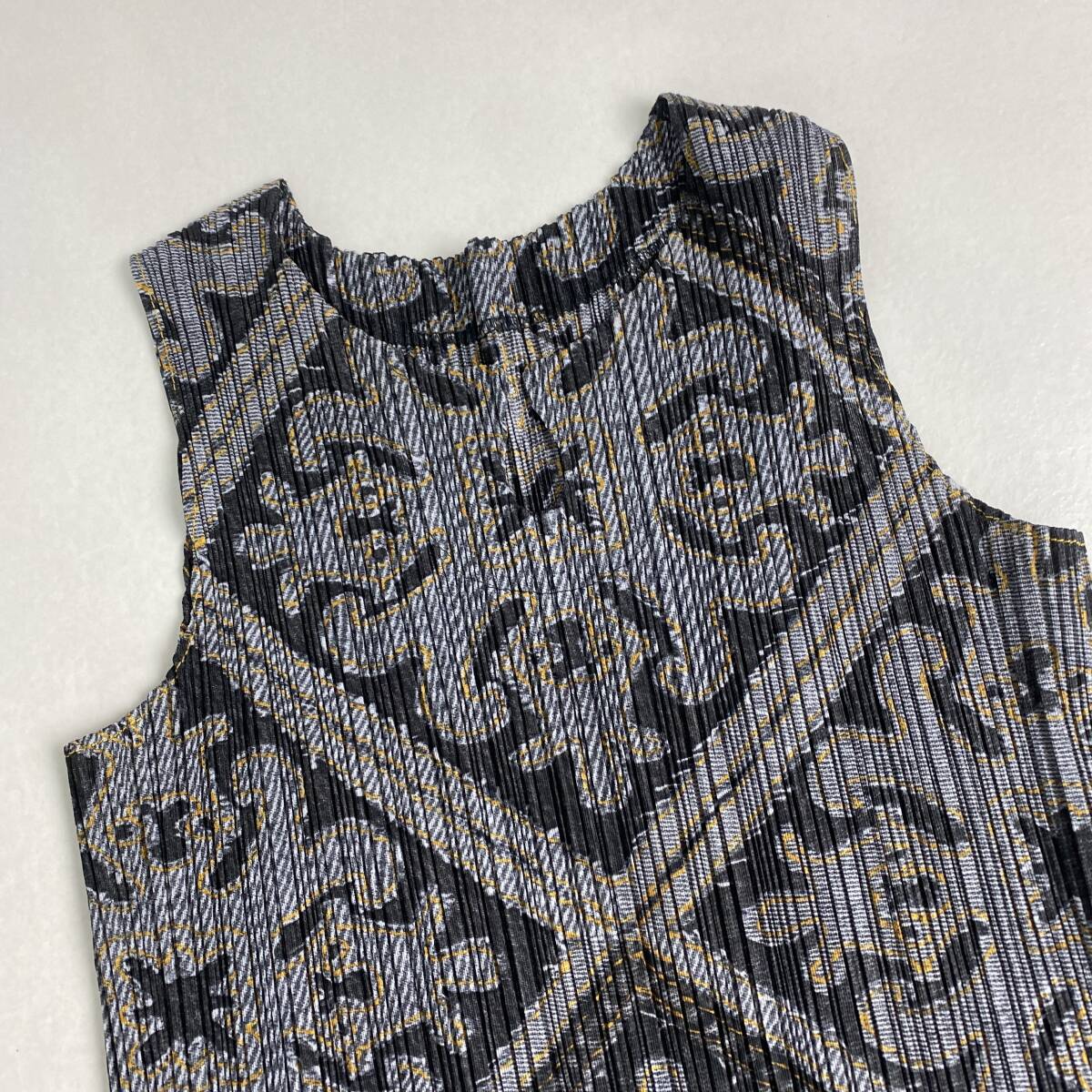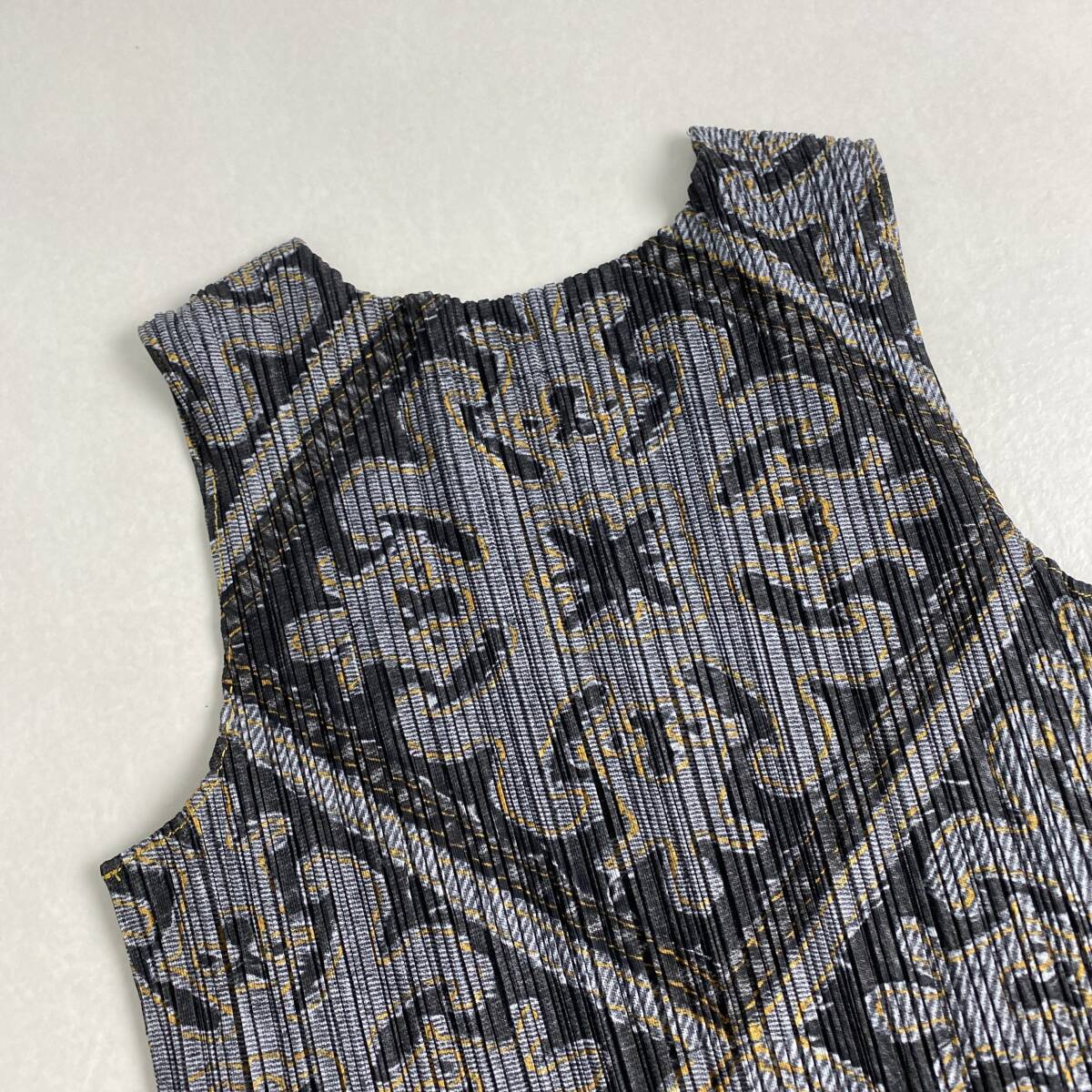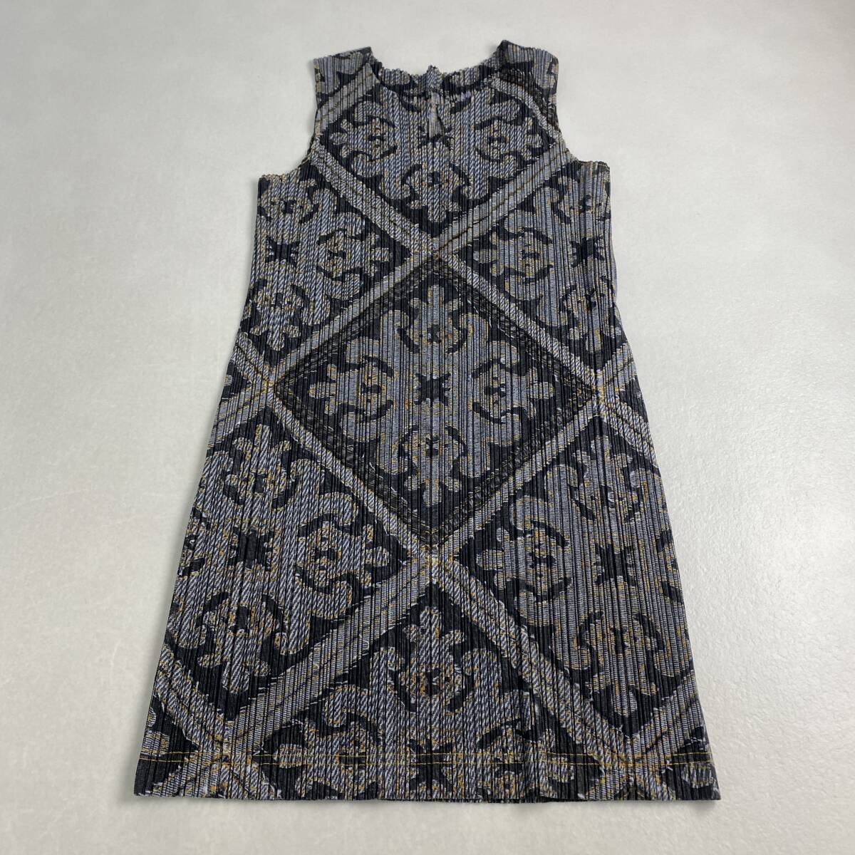 美品 プリーツプリーズイッセイミヤケ ノースリーブワンピース 総柄 プリーツ加工 グレー ブラック PLEATS PLEASE ISSEY MIYAKE