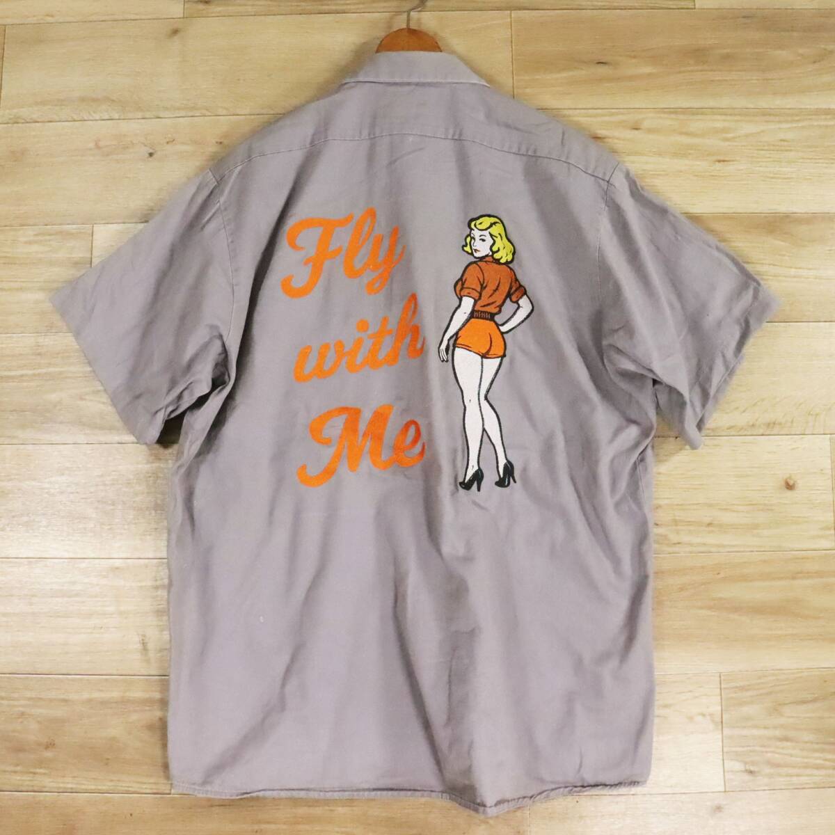 A4T アメリカ古着 Cintas シンタス ワークシャツ 刺繍 XL ピンナップガール