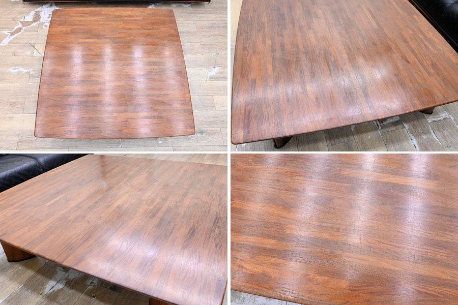 ----------------------------------------------------------------------------------------- ●送料や注意事項は必ずご確認下さい。落札後にトラブルになるケースが増えております。● ◆コンディションは写真・文章にて記載して有りますが、全てのキズの写真は掲載致しておりません。大きなダメージを除き見落とし、記載漏れが有る事はご了承下さい。 ◆当サイトにて出品する商品は多種多彩で、当方商品知識の無い物も多数ありますので落札後の質問やメンテナンス等にはお答えできません。 ◆入札された時点で、画像、文章をご理解していただいたものと判断させていただきます。不明な点は前もってQ&Aからお願い致します。入札後の質問やお電話等でのキャンセルは一切受け付け致しません。 ◆商品説明に「ノークレーム」と記載しているものに関しては、如何なる状況で届いても保証致しません。詳しくは注意事項の「商品到着後について」の最後に記載しておりますのでご確認下さい。 ---------------------------------------------------------------------------------------- カリモクの中でも希少なデザインで最高級クラスの素晴らしいセンターテーブル、中古品の出品です。 ※写真のその他は各単品にて出品しましたが、売れている場合も有ります。 今回ご紹介するお品は今では伐採禁止となり希少性が増している本花梨を使用した大変贅沢なお品です。 今では本花梨のお値段が上がっている為、廃盤となっているお品です。 デザイン的にも非常に人気が高く、中古市場でも憧れのお品となっています。 使用用途はご家庭のリビングはもちろんのころ、役員事務所等、重役のオフィスでも高級感があり、大事なお客様をお迎えするにはピッタリの品格備えたお品です。 テーブル 幅120x120 高32cm 【コンディション】 中古品ですので使用キズ、ダコン、ヨゴレ、塗装薄れ、脚先削れヵ所等有ります。 多少ガタツキあります。必要に応じて調整してご使用下さい。 使い込むことで味の増す、花梨無垢ですので、お見逃しの無いように。 | ||