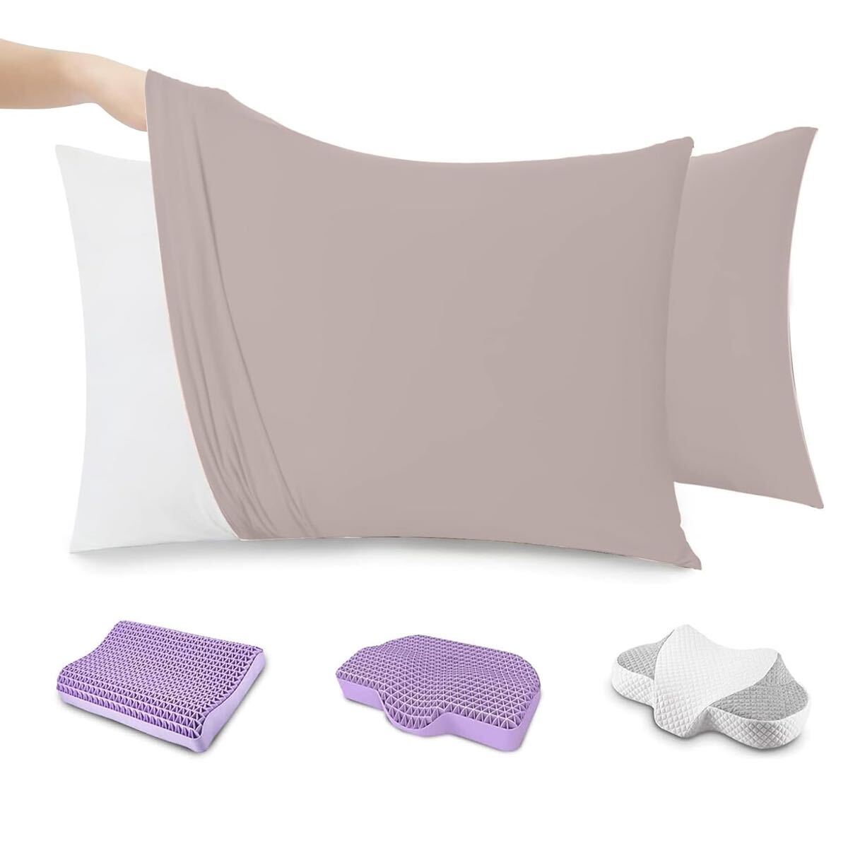 枕カバー 2枚セットピローケース まくらカバー 3Dストレッチ のびのび枕カバー 封筒式 おしゃれ オールシーズン 超吸水速乾 通気性 抗菌防臭 肌にやさしい 着脱簡単 (枕の43x63cmサイズに適用 ベージュ)