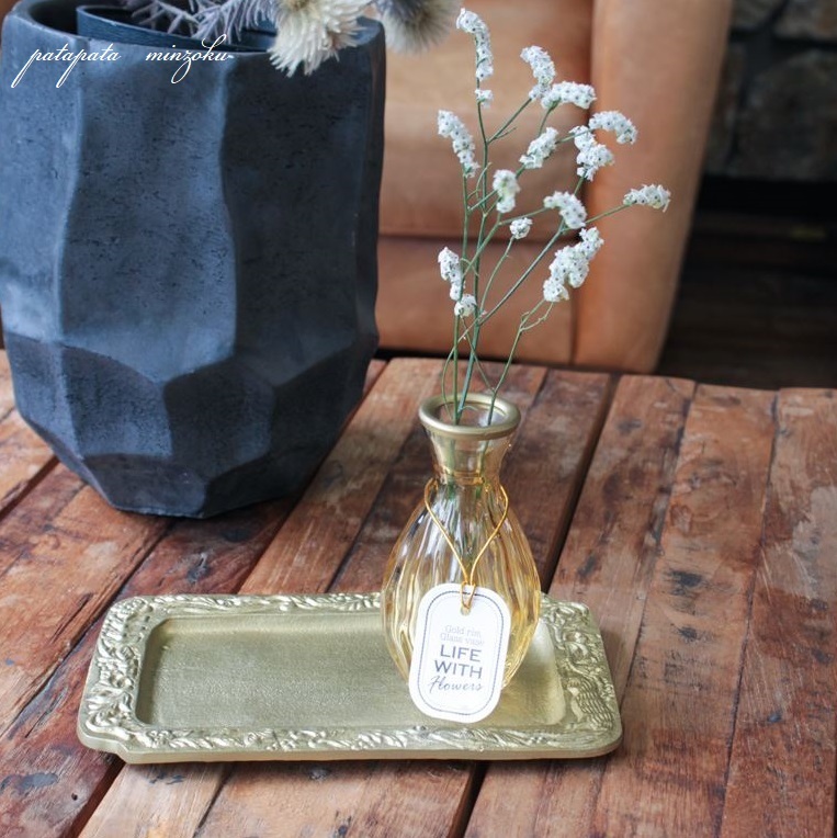 アルミ ボタニカルトレイ ゴールド アンティーク調 トレイ マネートレイ パタミン 店舗什器 キャッシュトレイ カルトン