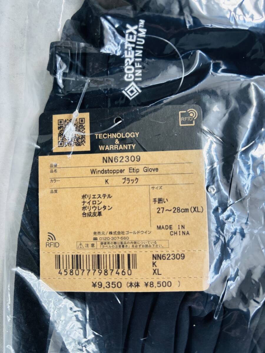 【新品】 サイズ XL THE NORTH FACE ノースフェイス WSイーチップグローブ NN62309 ゴアテックス 手袋 メンズ レディース 防風 防寒 通勤 1