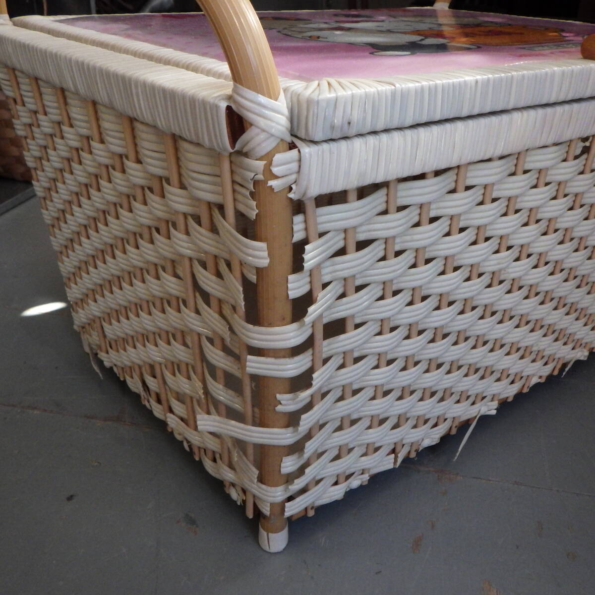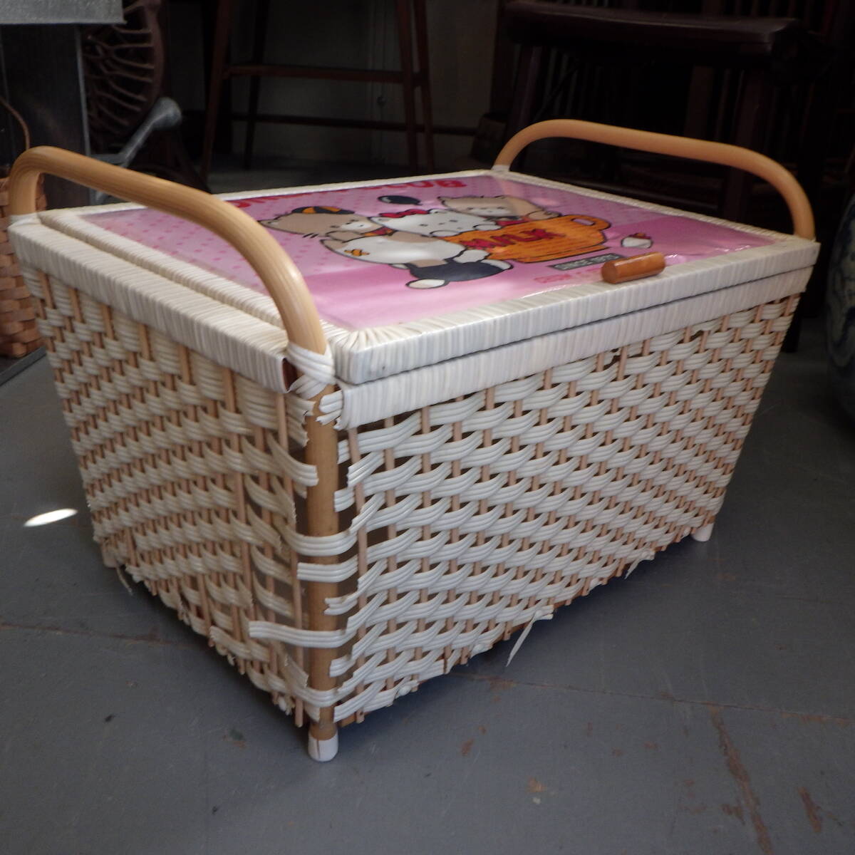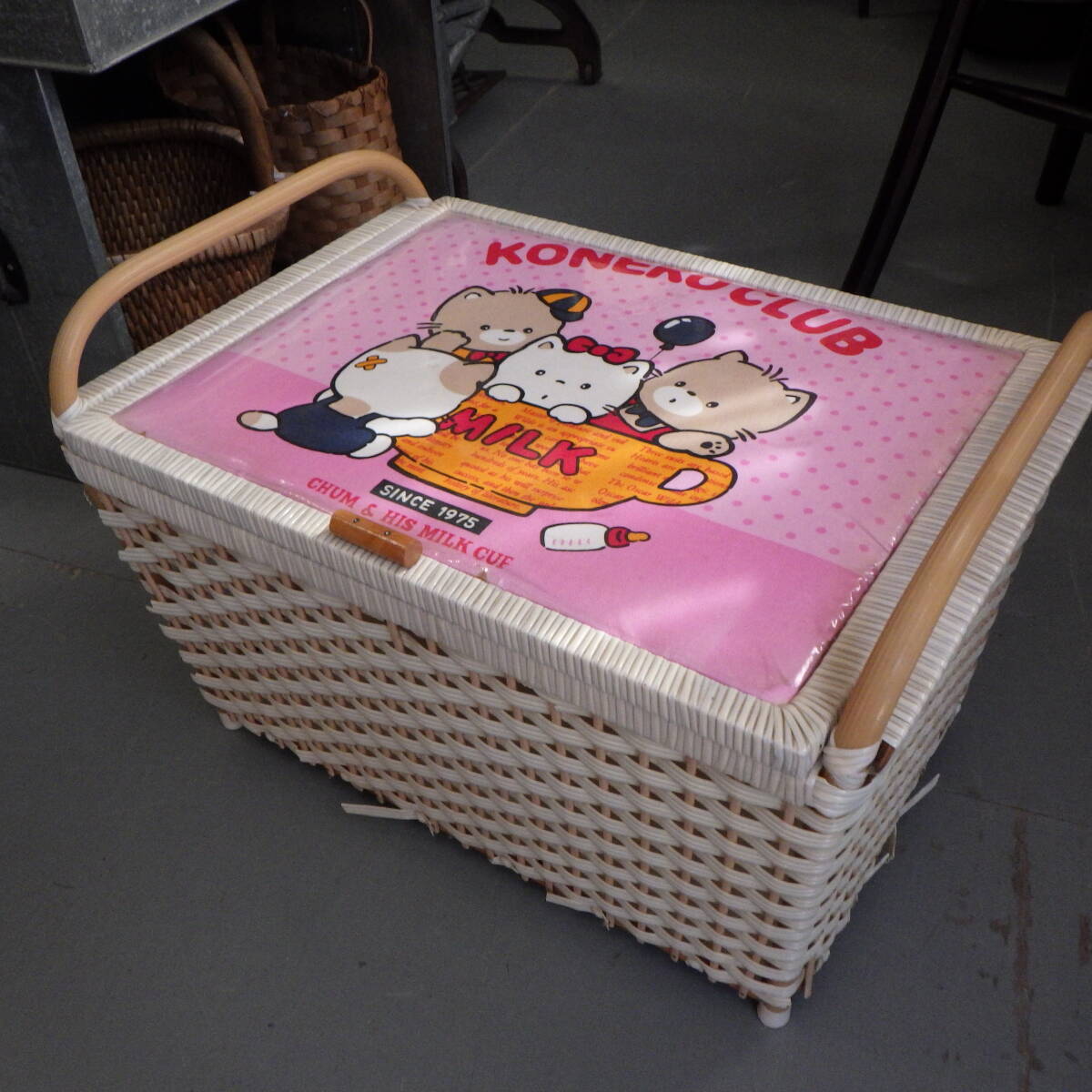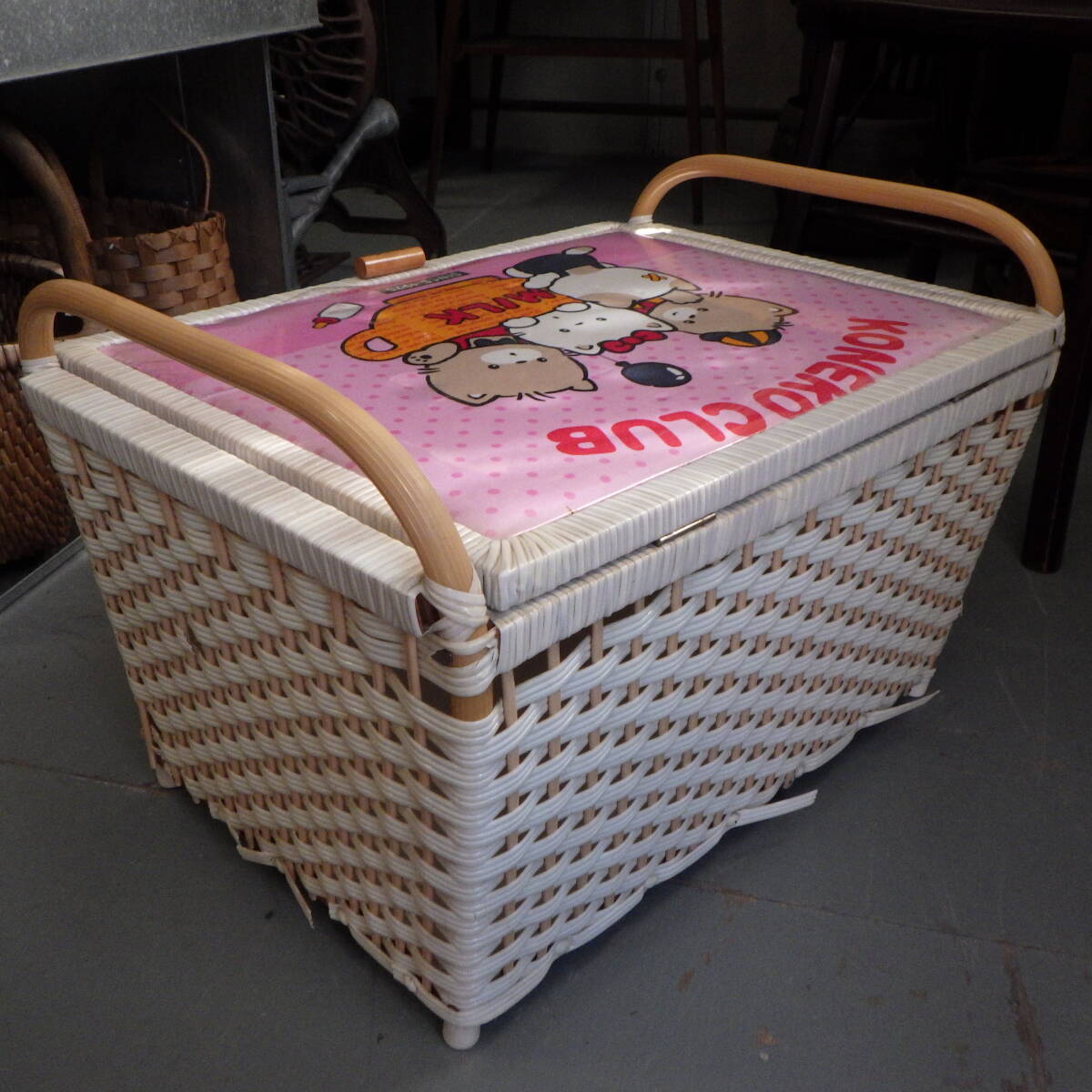 昭和 レトロ 蓋付き ビニールバスケット 収納カゴ 白 ホワイト オムツ入れ
