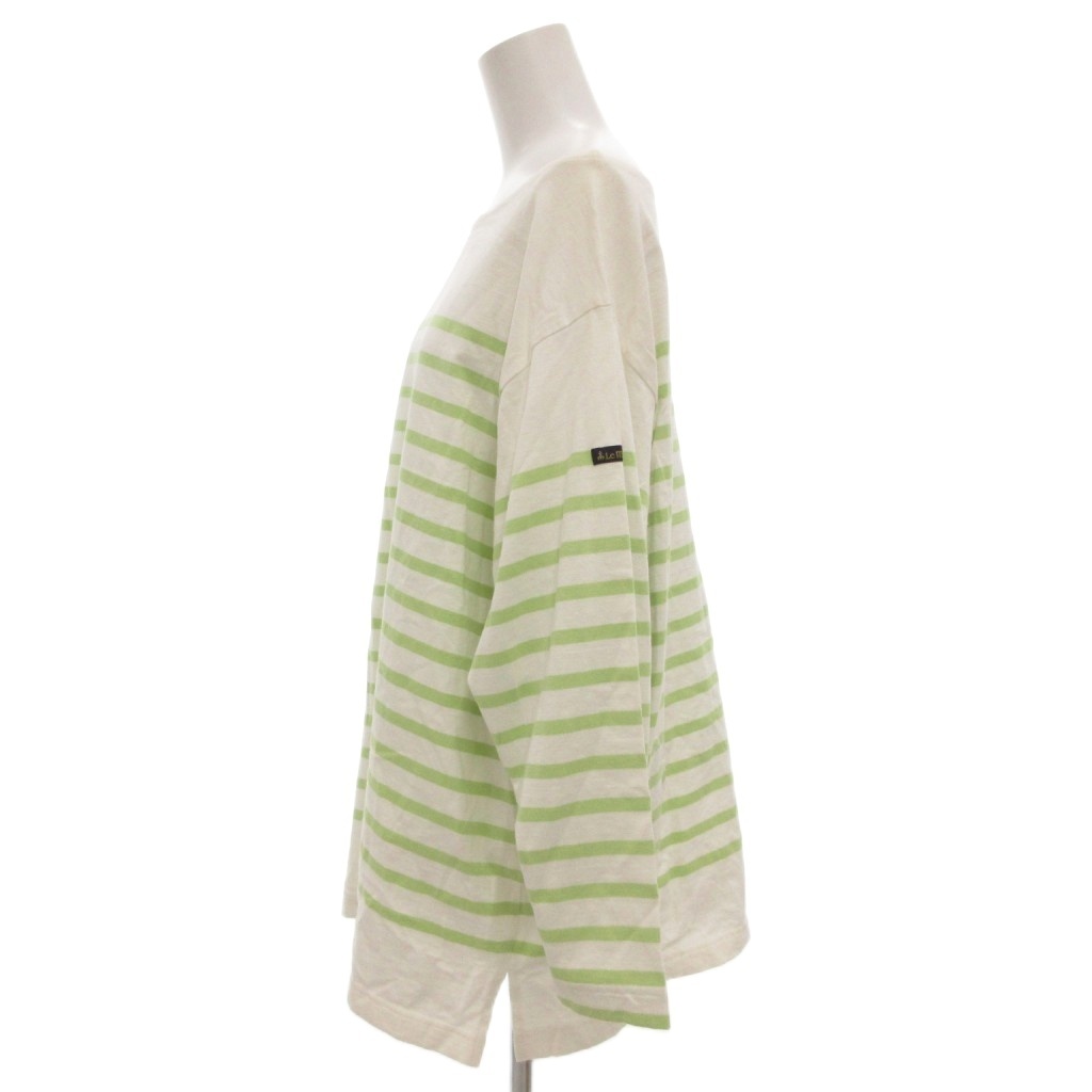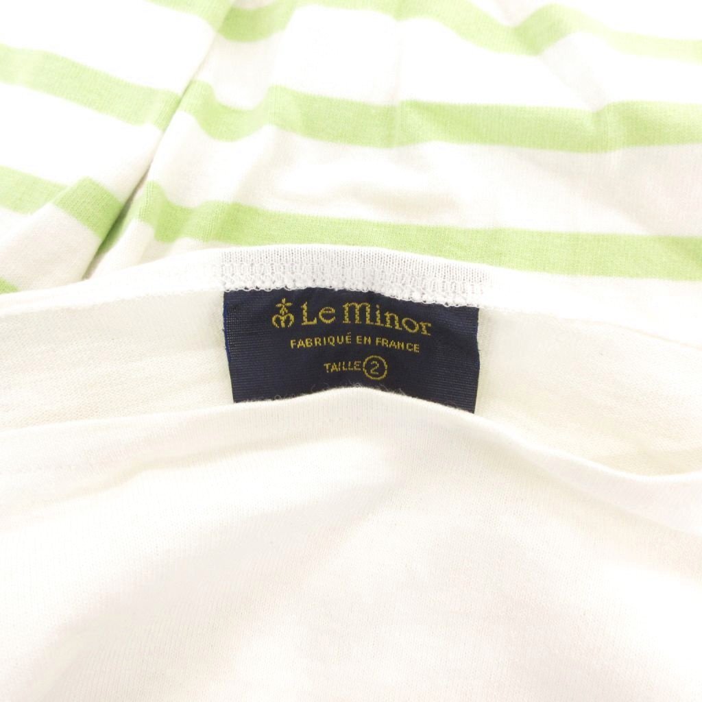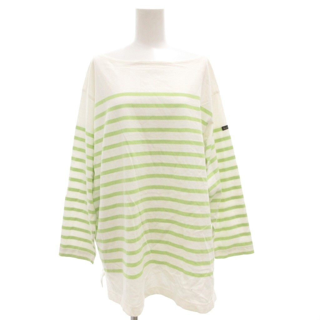 ルミノア Leminor バスクシャツ カットソー 長袖 ボートネック ボーダー フランス製 2 黄緑 ライトグリーン 白 ホワイト /GV