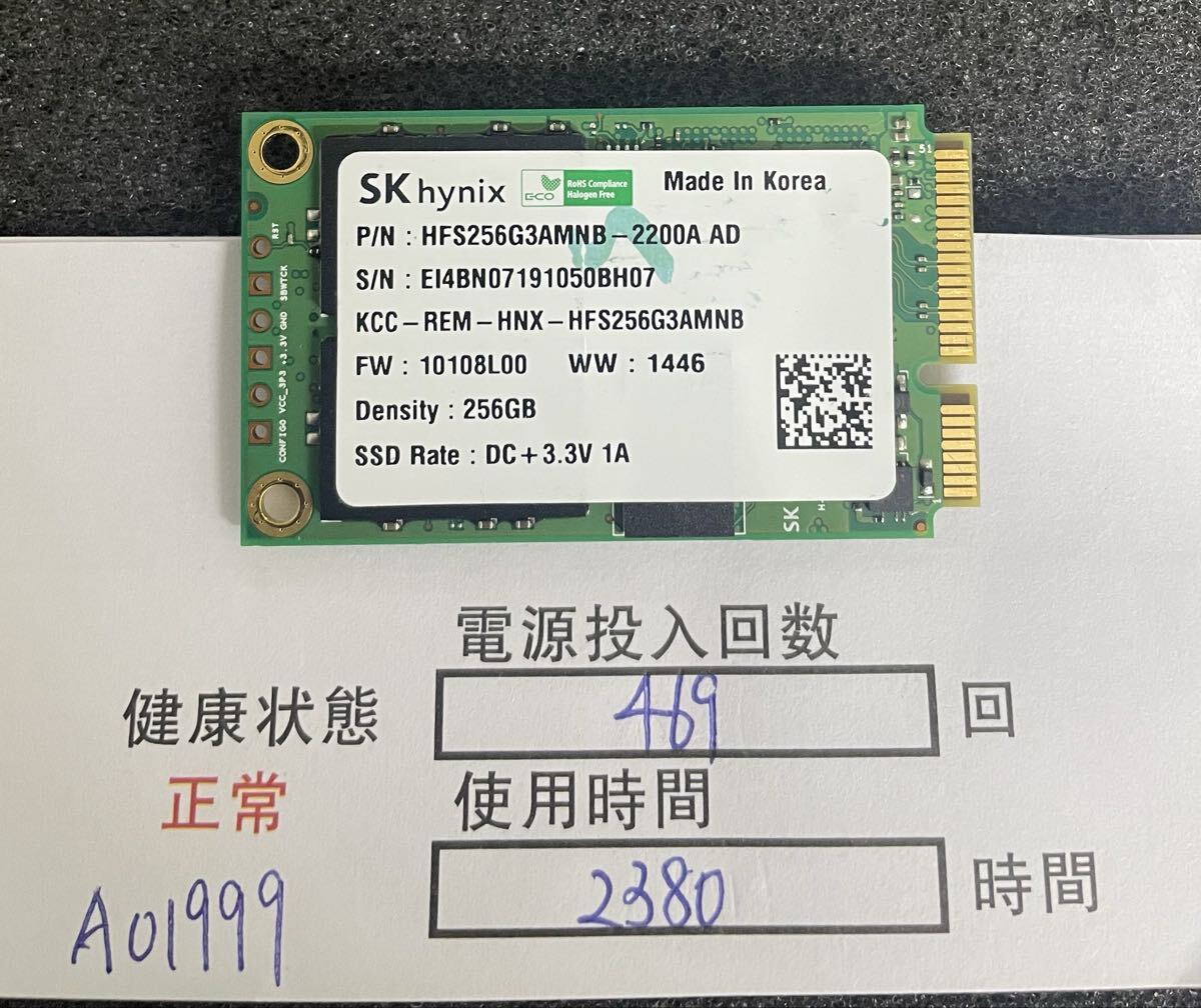 A01999/中古品/Msata SSD/SKhynix/256GB/動作確認済み/返品返金対応/納品書発行可(商品説明文ご確認下さい)