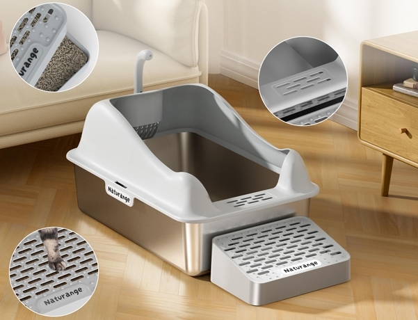 ステンレス製の猫トイレ 大きめ 隠す 飛び散らない 隠す猫トイレ トイレ 猫 カバー 大型 上から 本体 散らからない フル ネコ Naturange