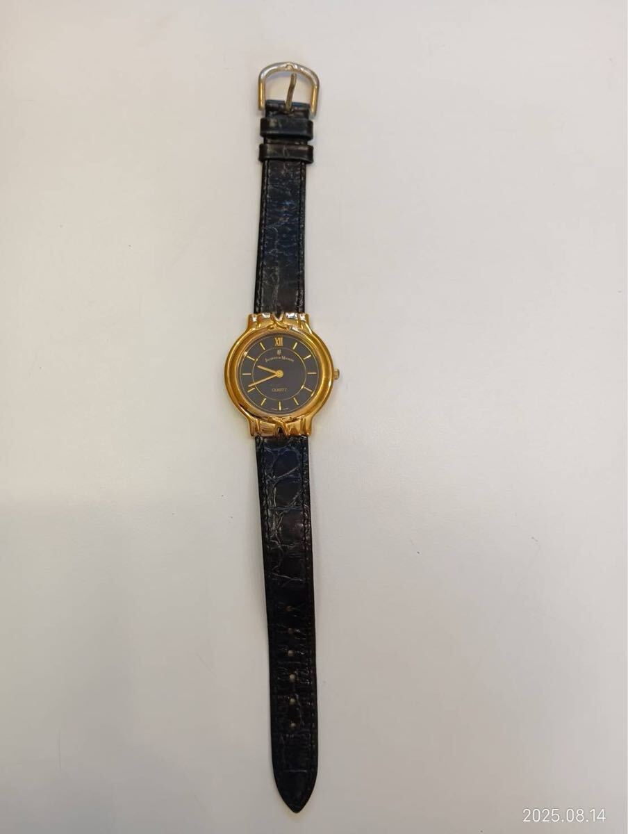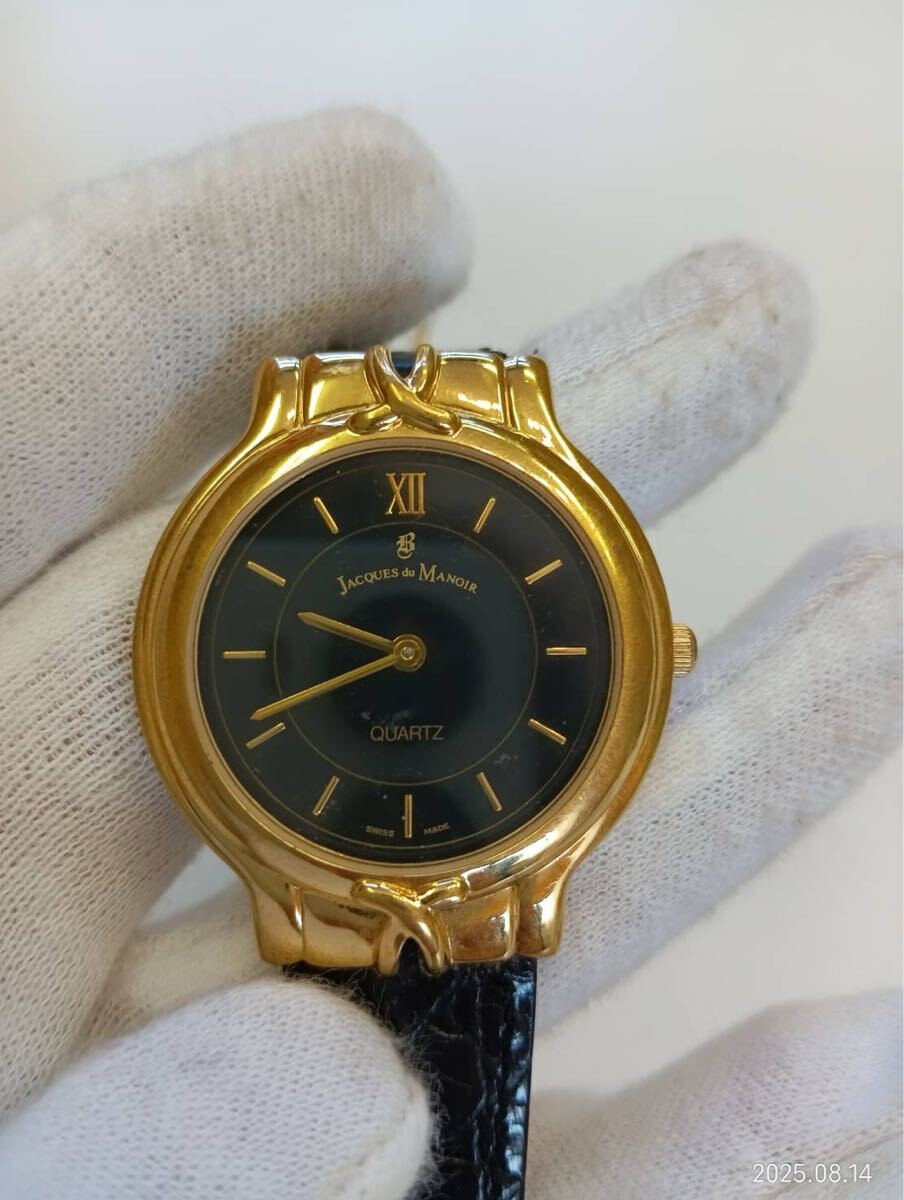JACQUES du MANOIRジャックマノワール 腕時計 クオーツ ゴールド×黒ブラックレザーベルト 時計 現状品