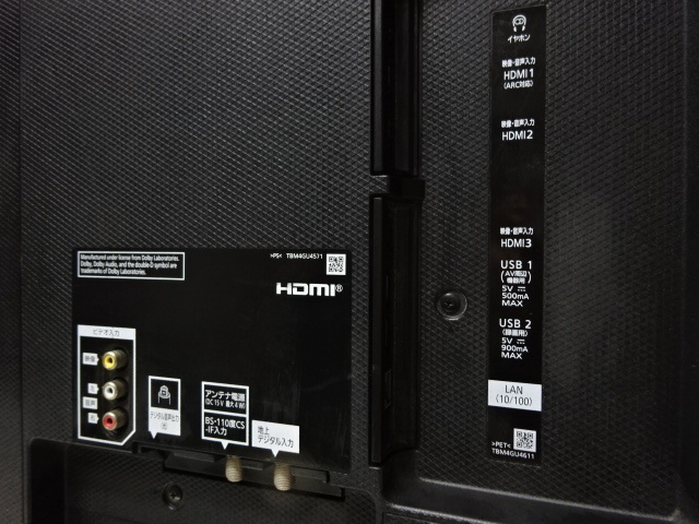 | 入出力端子 | HDMI入力端子×4(内1 ARC対応)、LAN端子、USB端子×3、 |