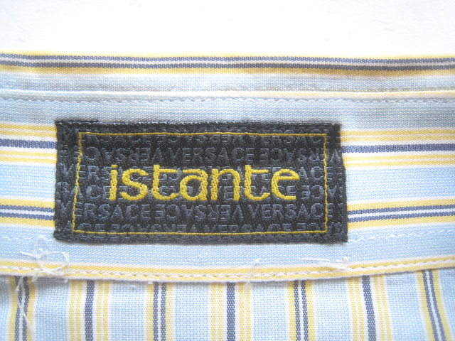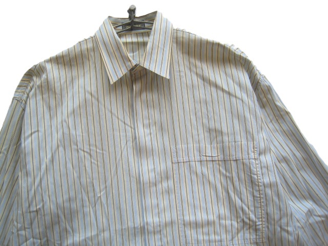 極上イタリア製!!ジャンニ ヴェルサーチ GIANNI VERSACE istante*90s 胸ポケット付き ストライプ柄シャツ 48 実寸L 水色 アーカイブ