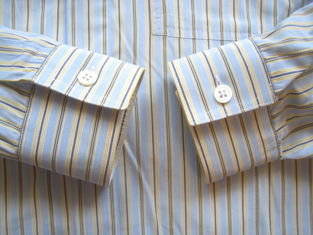 ジャンニ ヴェルサーチ(イスタンテ)の胸ポケット付き ストライプ柄シャツです。左胸にポケット付き、フロントはボタンが隠れる比翼仕立て、襟はレギュラーカラーになっています。