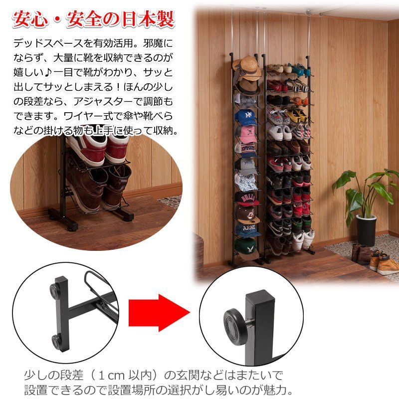 ■商品サイズ/本体:(約)幅53×奥行22.5(脚部20)×高さ200~265cm、棚間隔:(約)14.5cm、棚:(約)幅48×奥行23cm