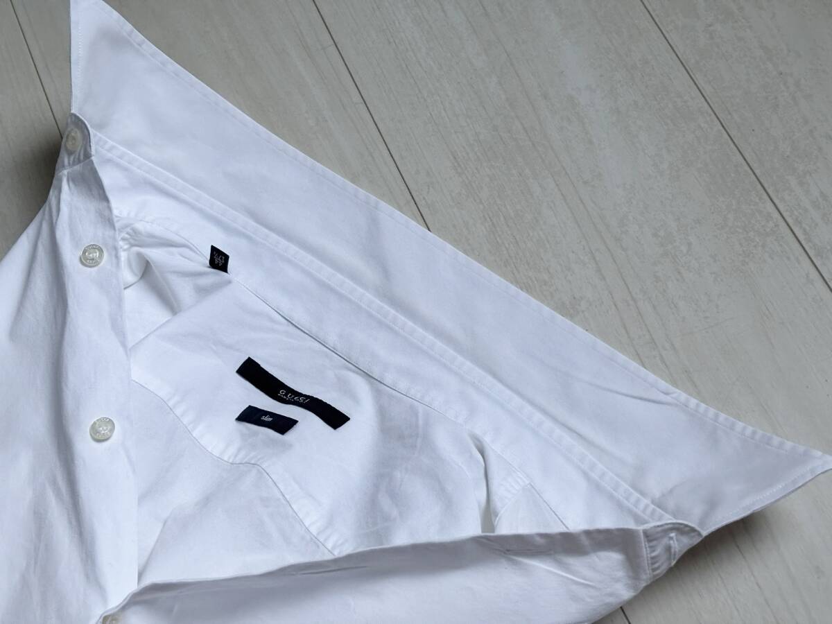 GUCCI グッチ Slim Fit Shirt スリムフィット シャツ 長袖 無地 シンプル 44 17 1/2 白 ホワイト ▼08107