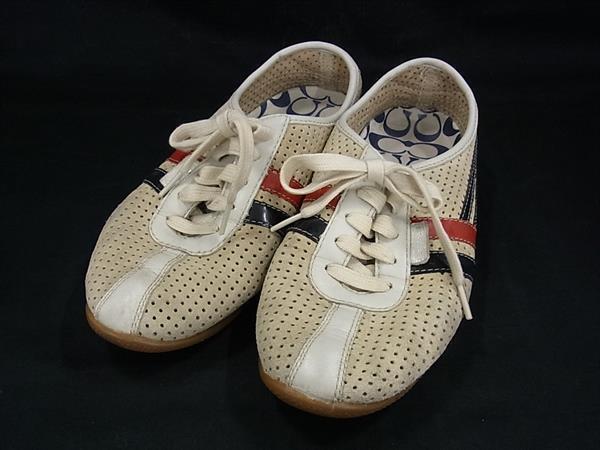 COACH コーチ スエード×レザー×パテントレザー スニーカー 表記サイズ 5.5M (約22.5cm) 靴 シューズ アイボリー系×ブルー系 DI2356