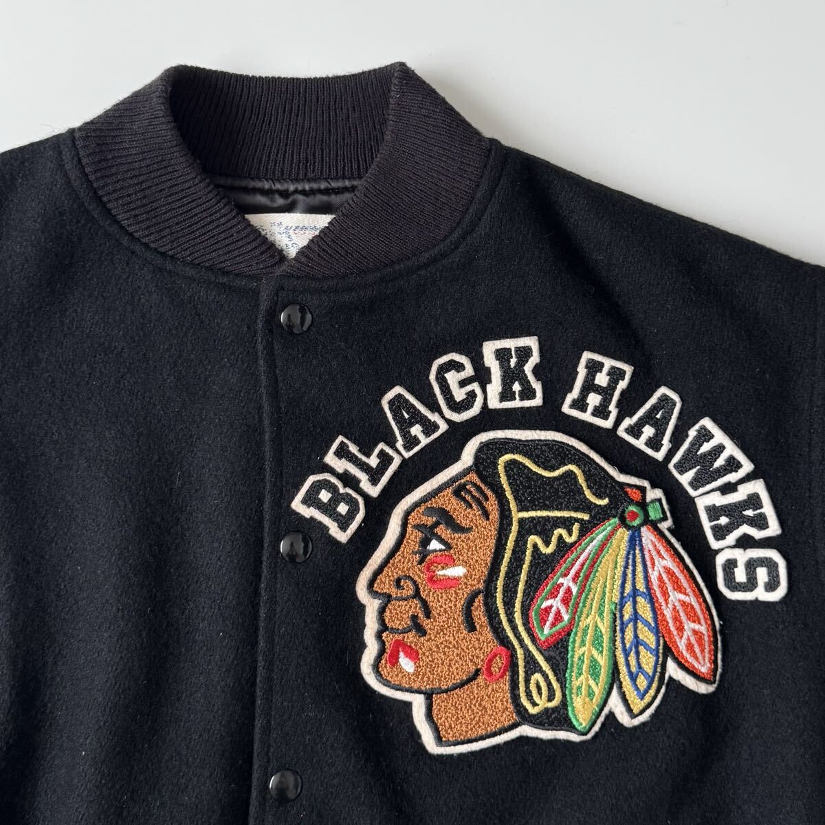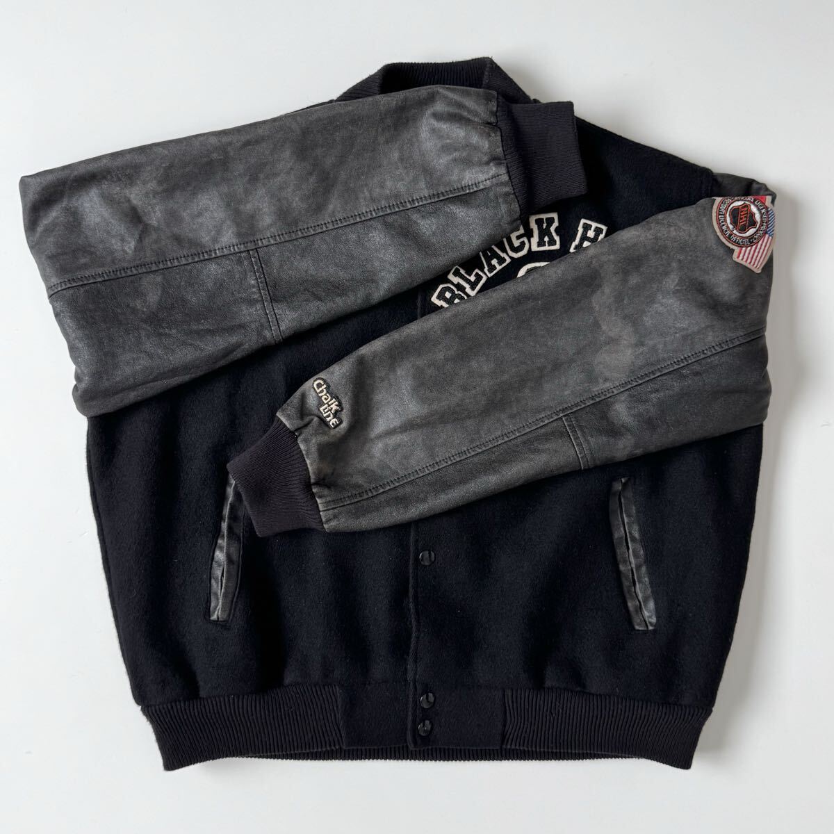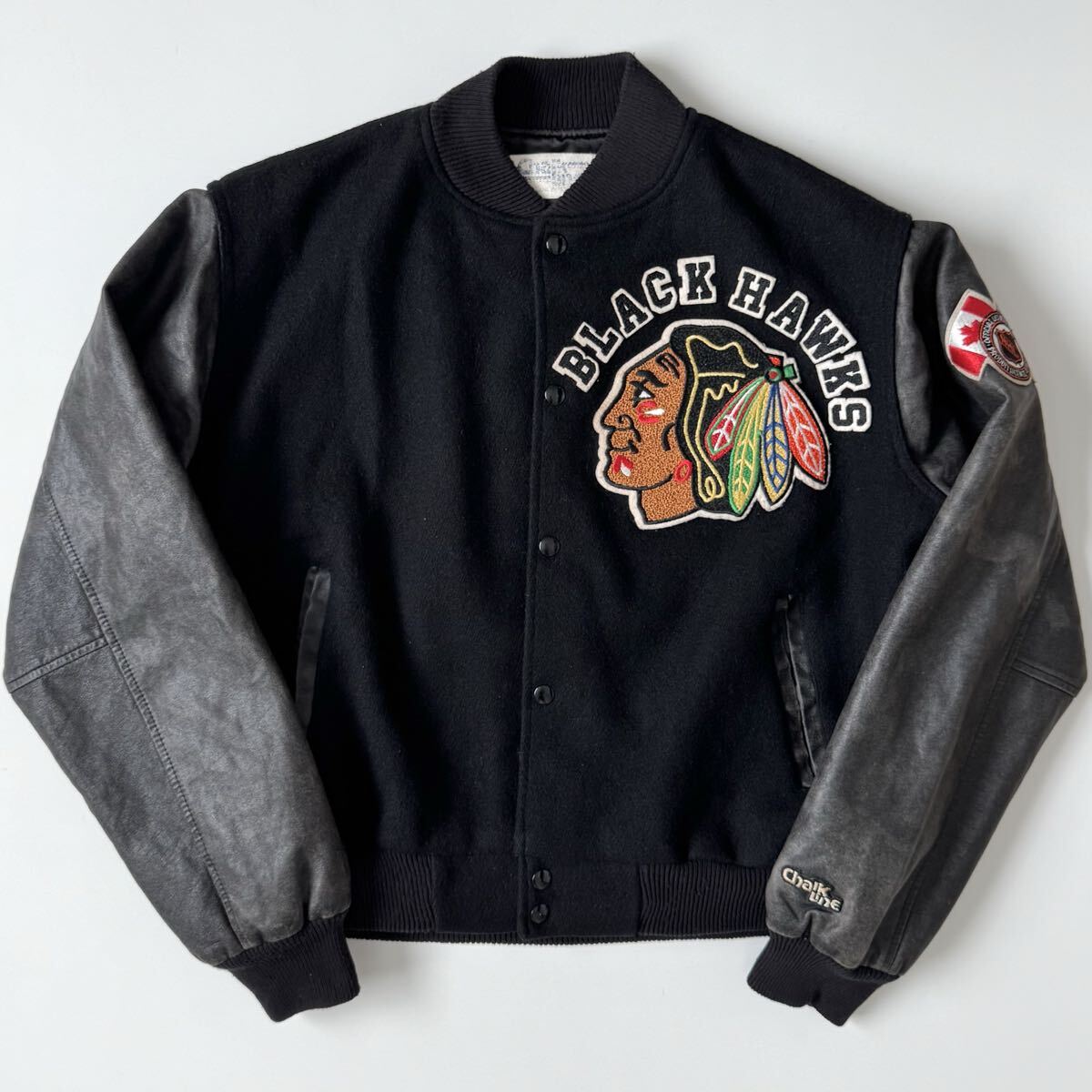 90s USA製 chalk Line ブラックホークス スタジャン L 黒 ジャケット ヴィンテージ ビンテージ チョークライン ブラック アメリカ製 米国製