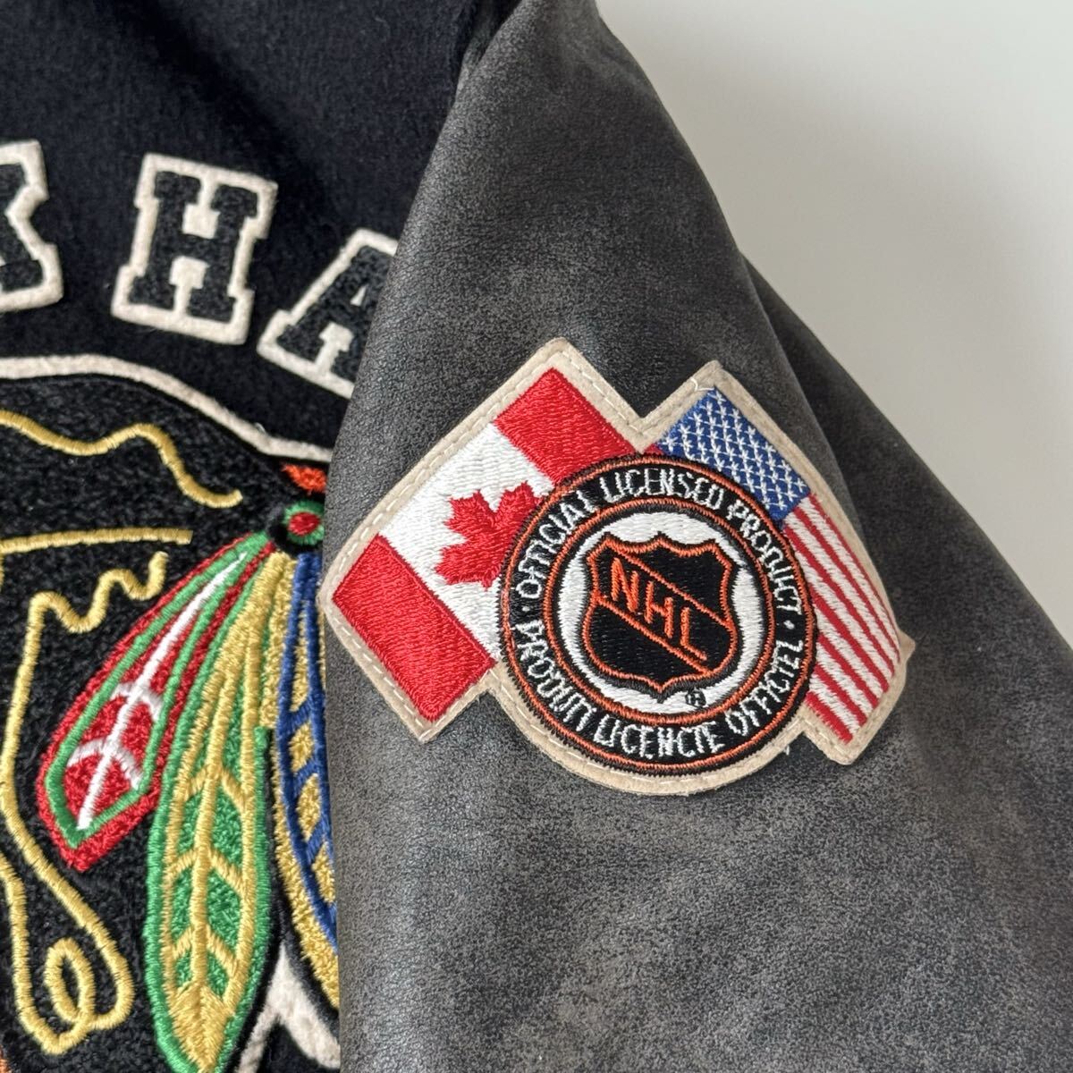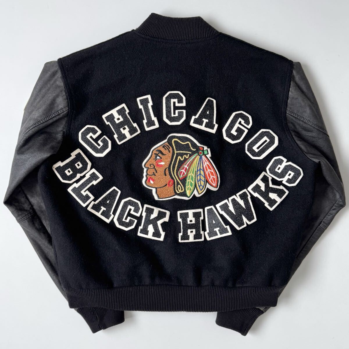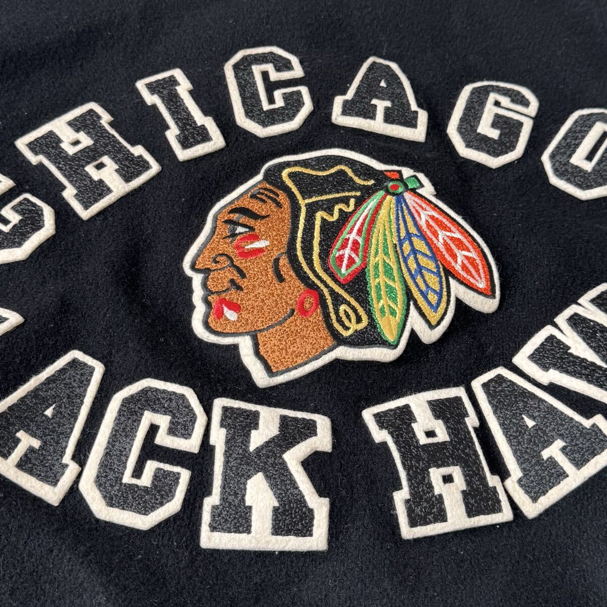 90s USA製 chalk Line ブラックホークス スタジャン L 黒 ジャケット ヴィンテージ ビンテージ チョークライン ブラック アメリカ製 米国製