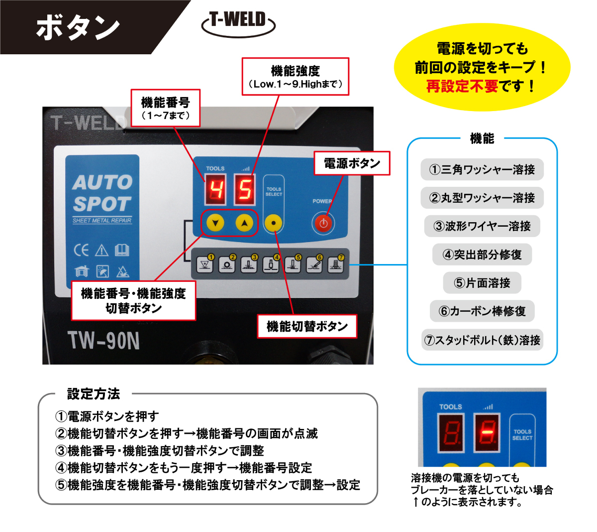 自動車 板金 修復 用 スタッド溶接機 デジタル式 TW-90N 日本専用 200V 単相 台車付 1台単価