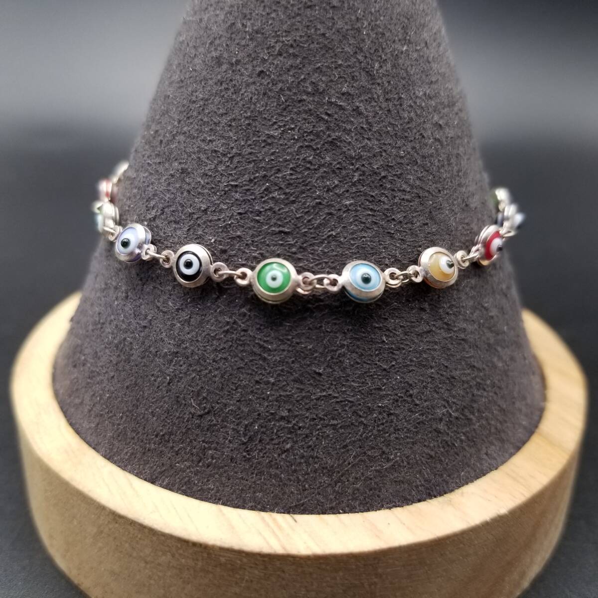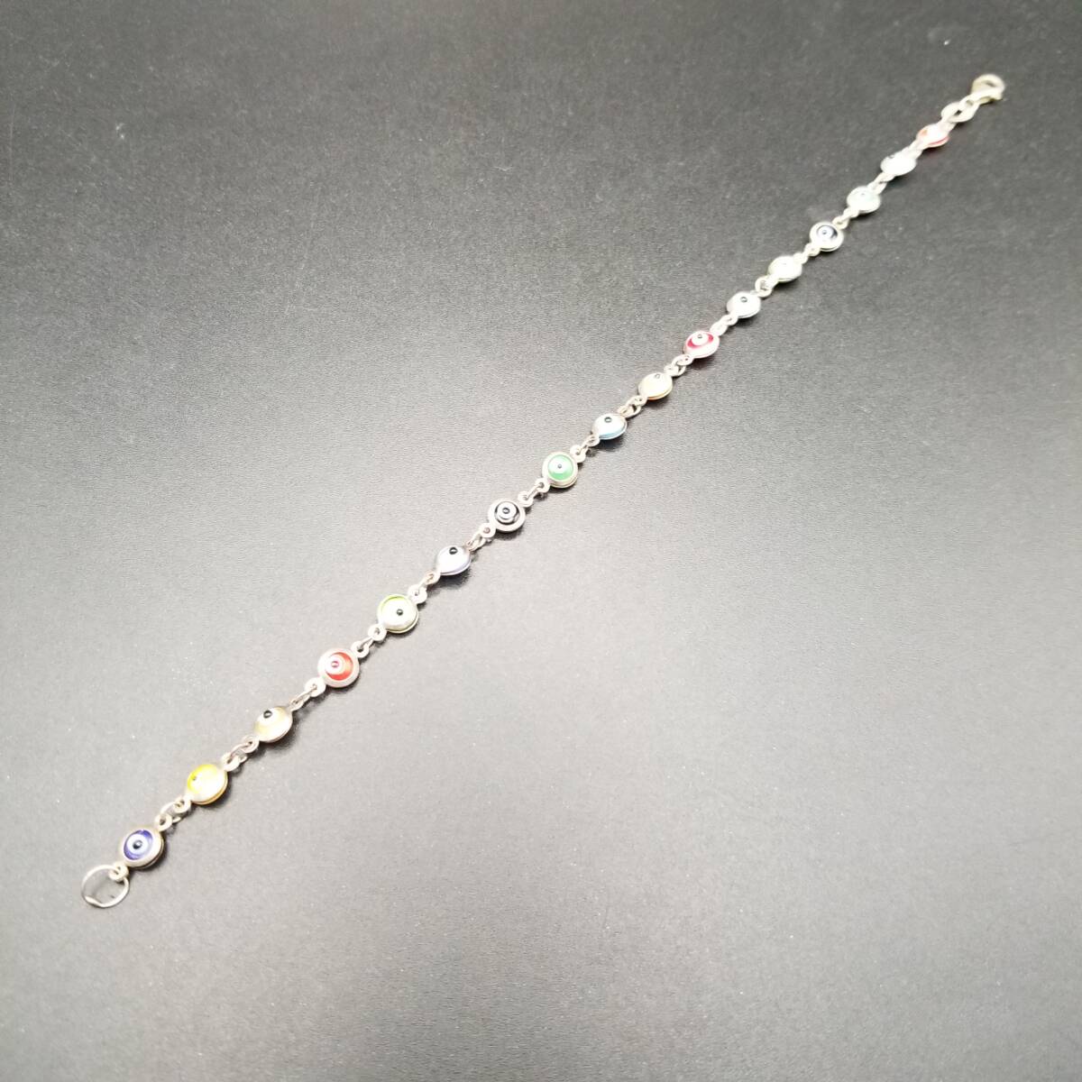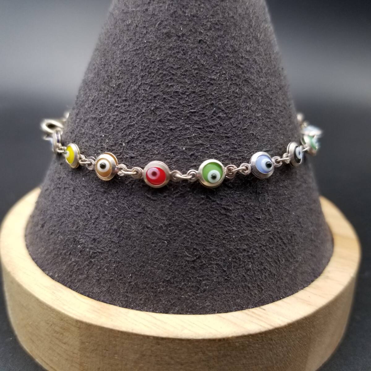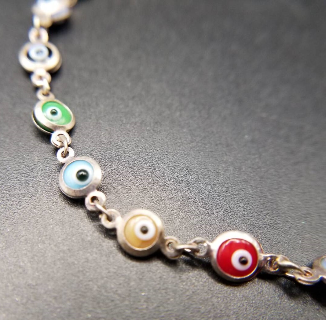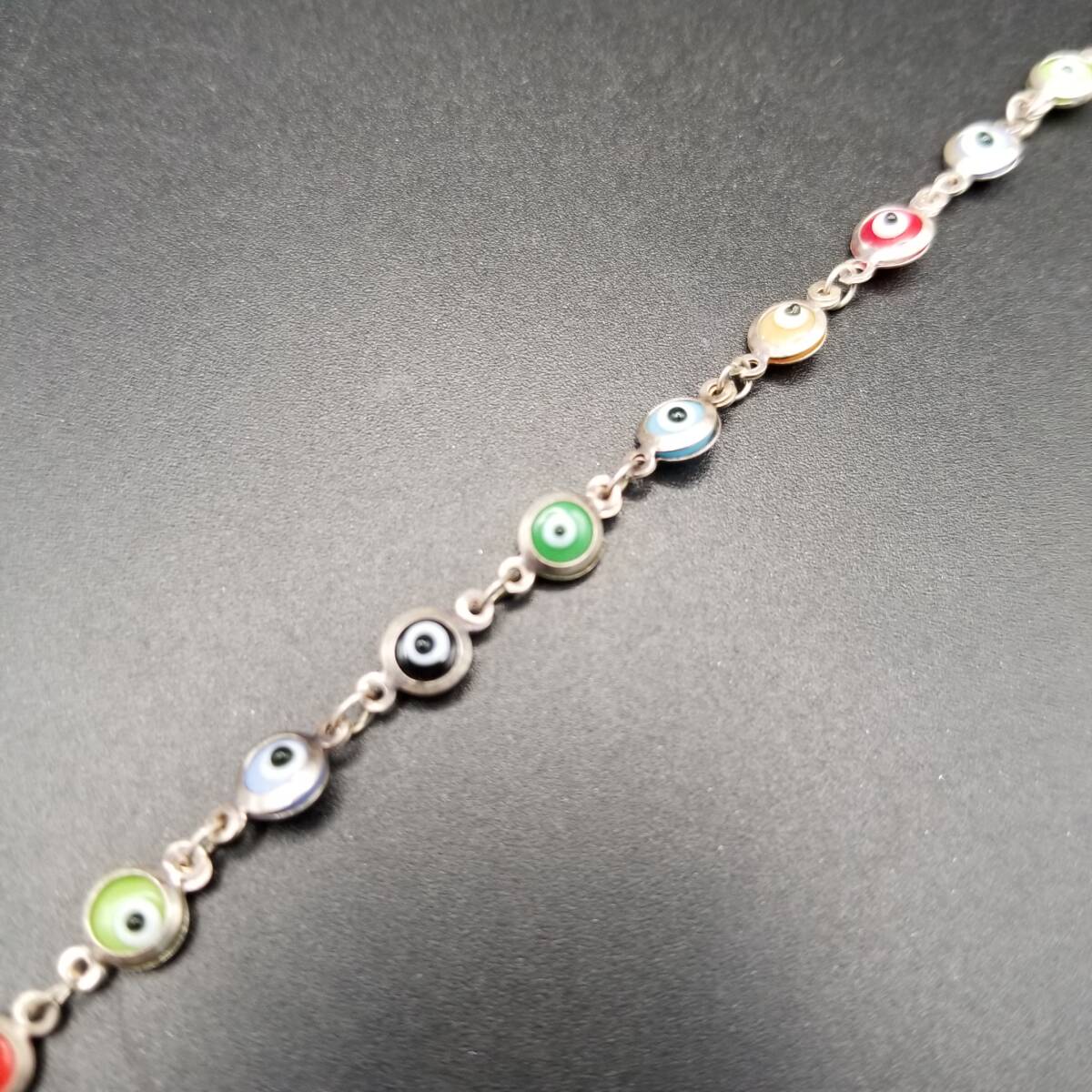 ナザールの目 カラフルガラス 小粒 925 シルバー ヴィンテージ ブレスレット 銀 鮮やか ナザールボンジュウ 個性派ジュエリー Y24-G