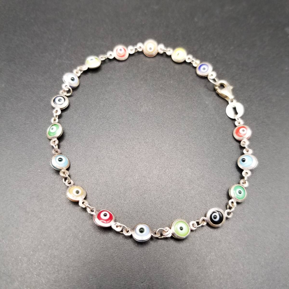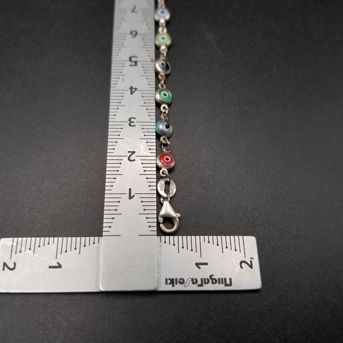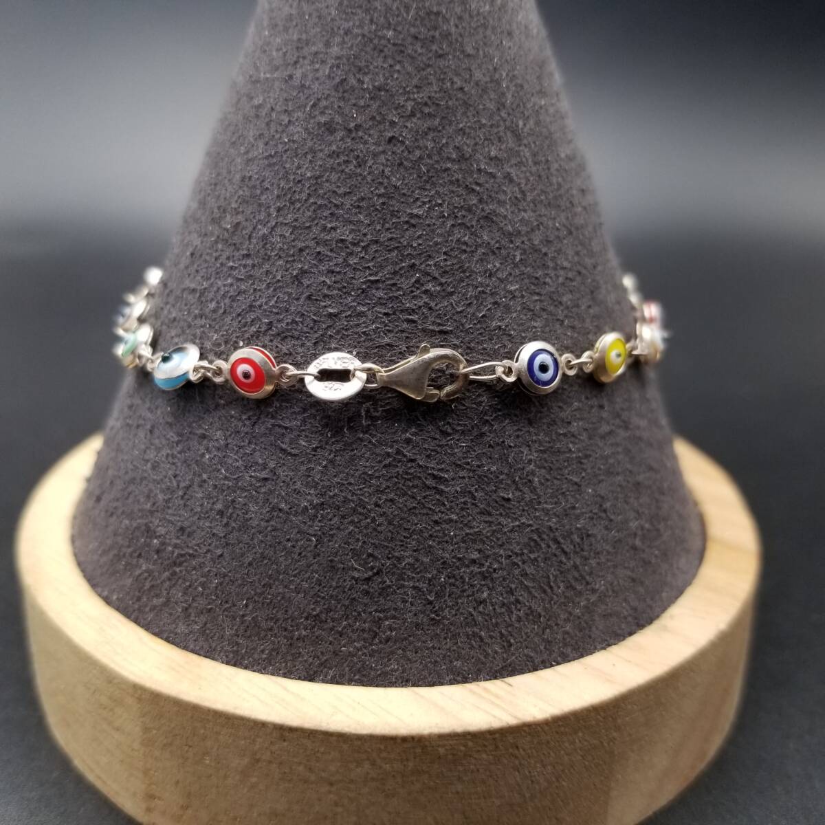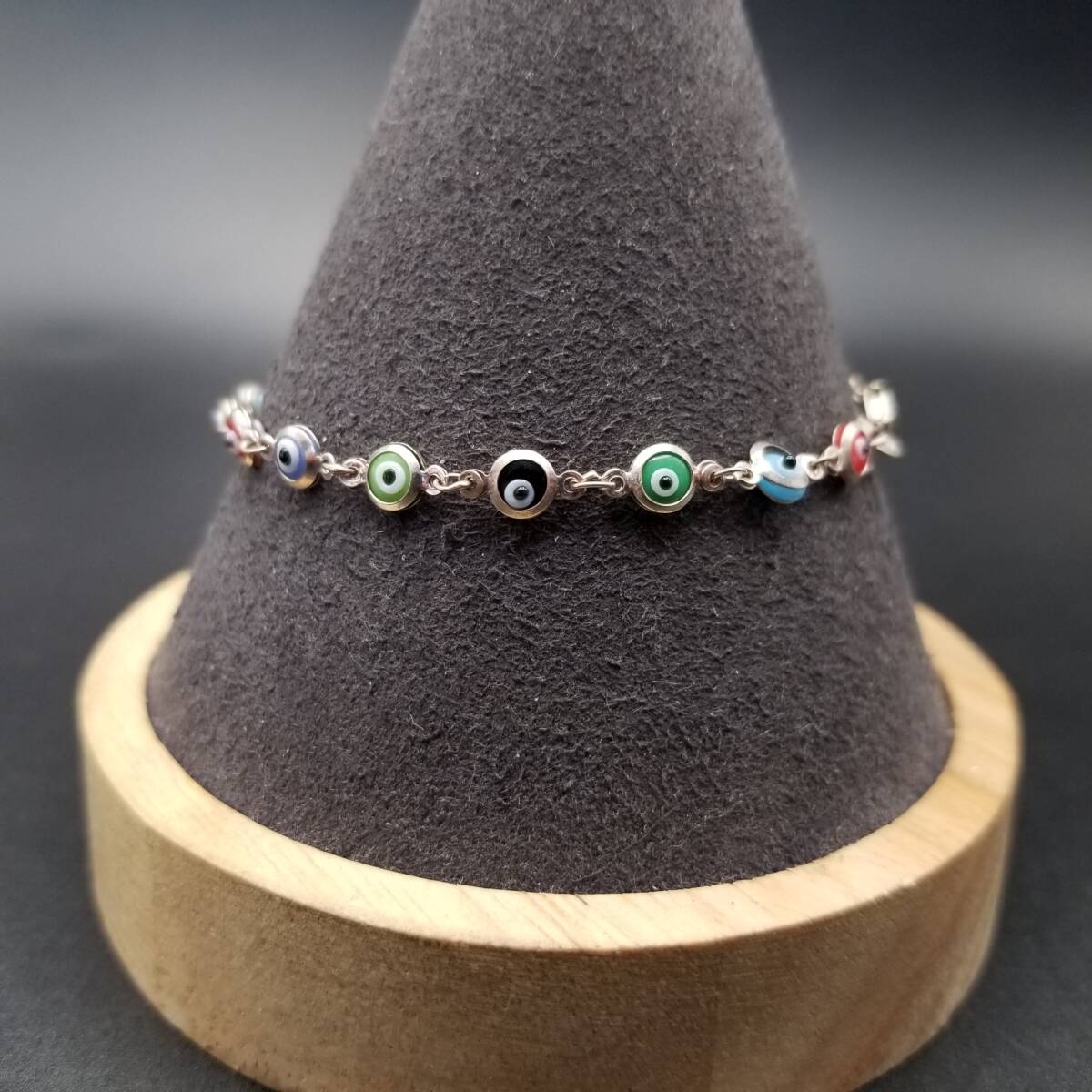 ナザールの目 カラフルガラス 小粒 925 シルバー ヴィンテージ ブレスレット 銀 鮮やか ナザールボンジュウ 個性派ジュエリー Y24-G