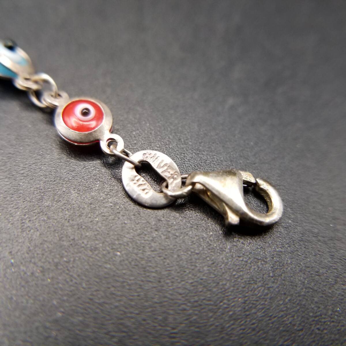 ナザールの目 カラフルガラス 小粒 925 シルバー ヴィンテージ ブレスレット 銀 華奢 ナザールボンジュウ 個性派ジュエリー Y24-G