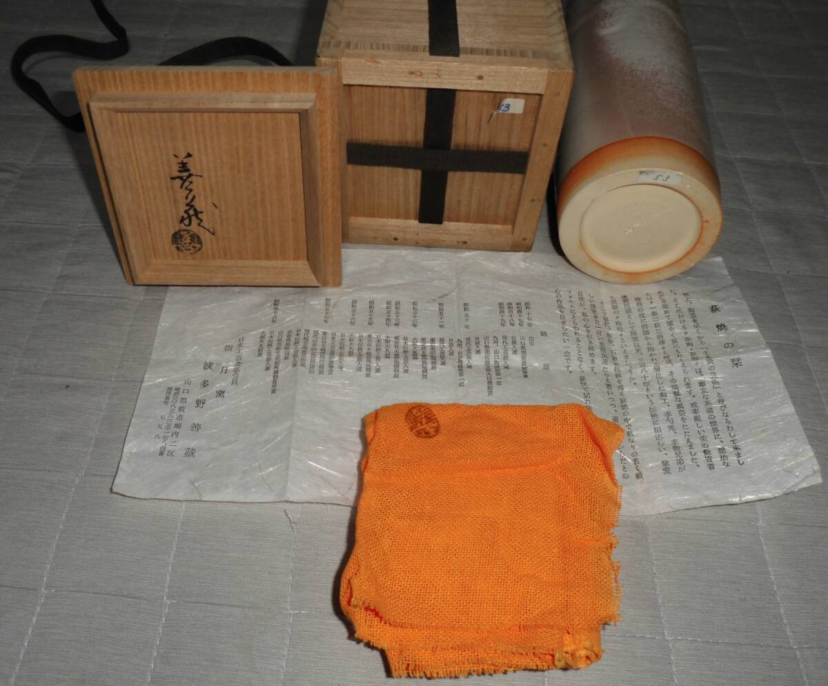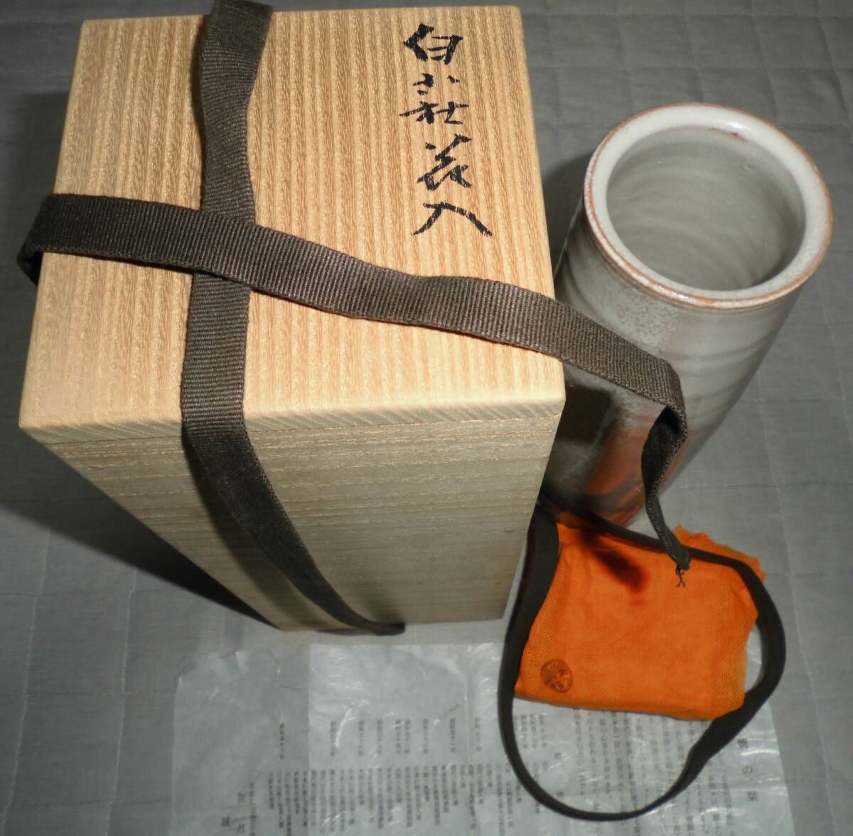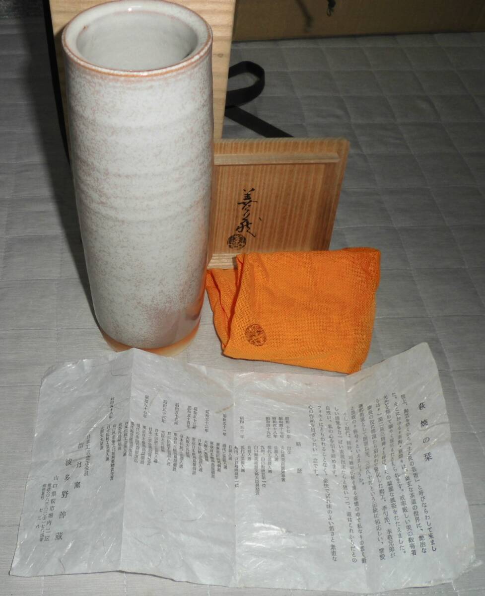 山口県無形文化財指定者である波多野善蔵先生の本人作で個展出品作品である「白萩花入 共箱共布共栞」です。本物保証です。
