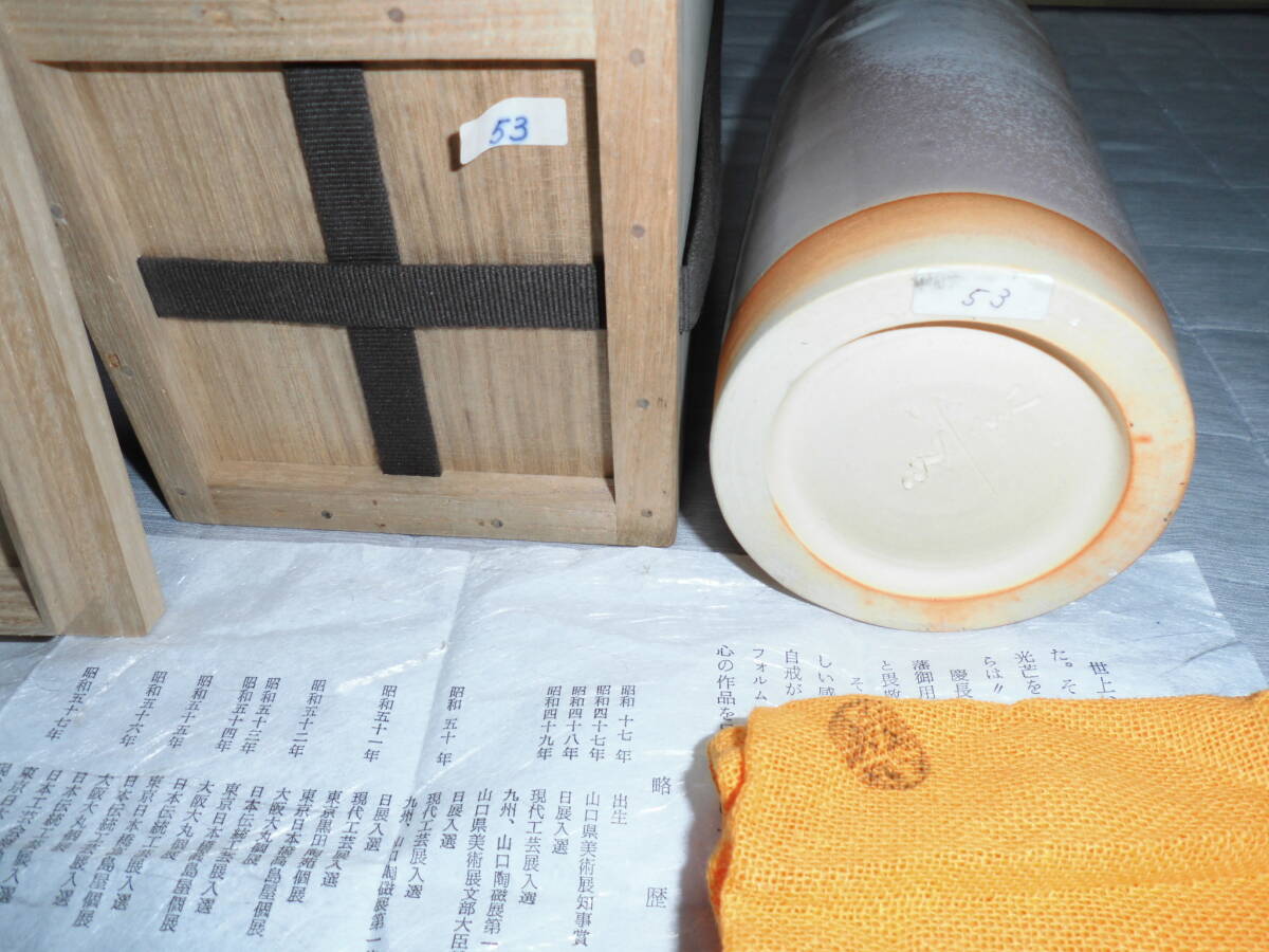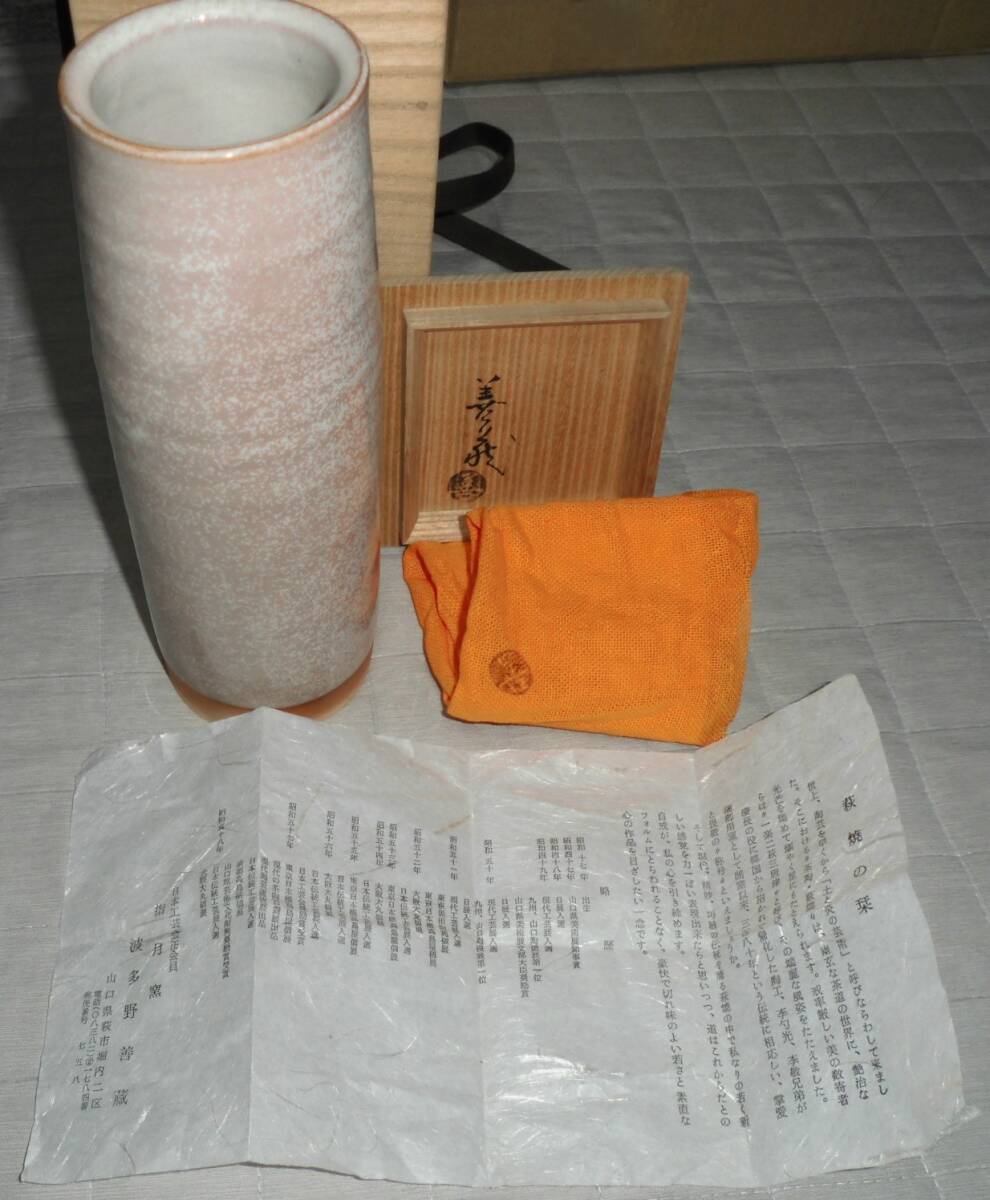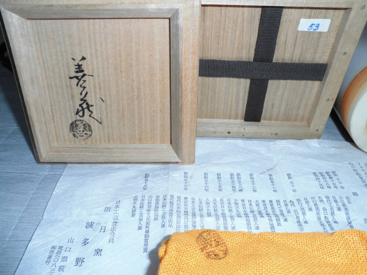 山口県無形文化財指定者である波多野善蔵先生の本人作で個展出品作品である「白萩花入 共箱共布共栞」です。本物保証です。