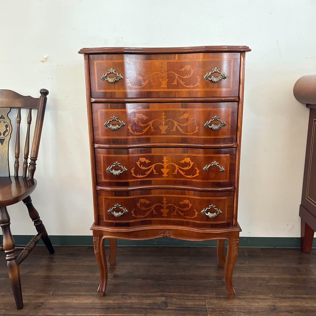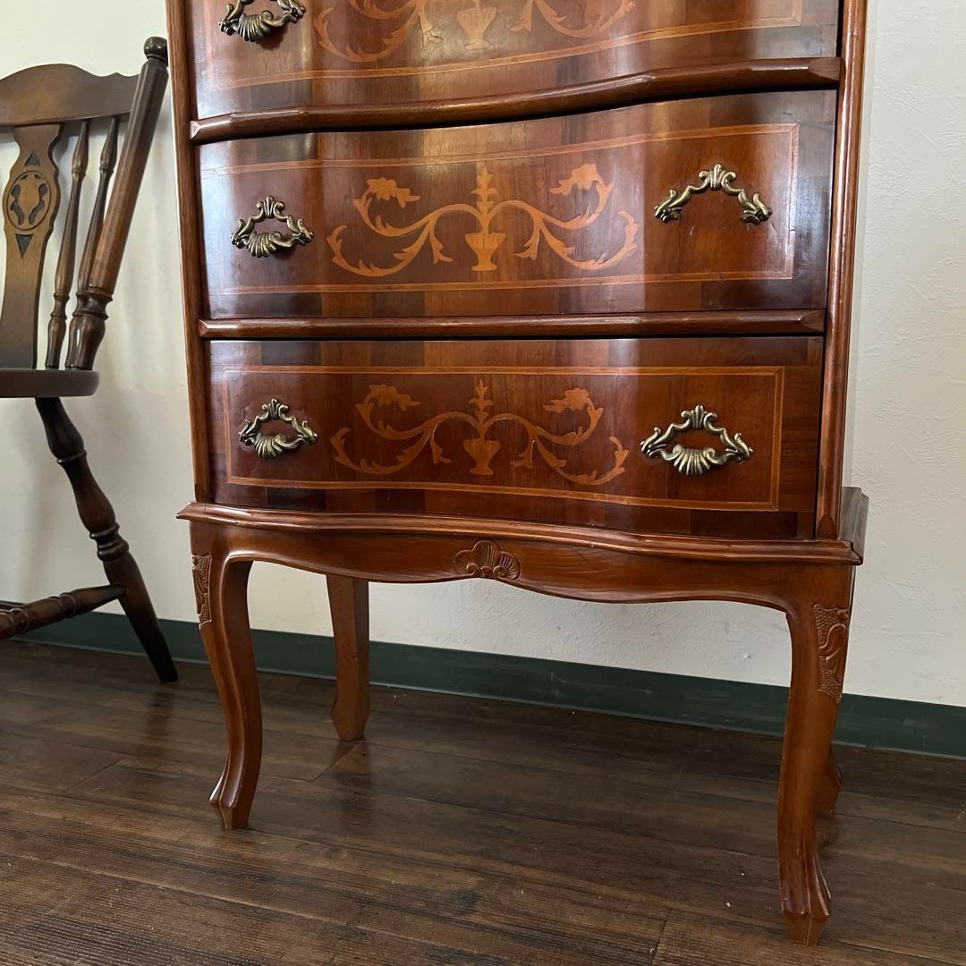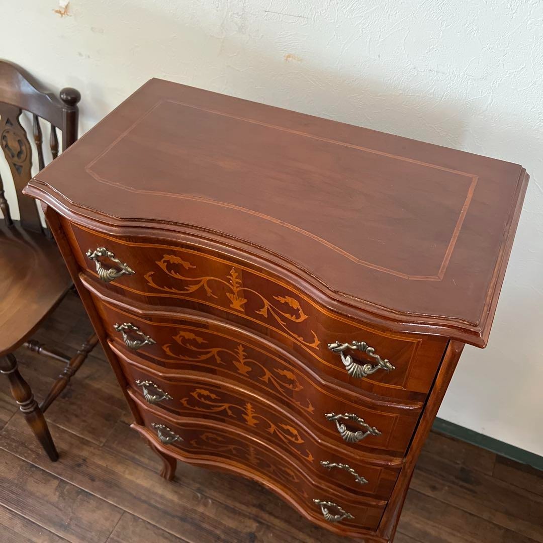 【 イタリア製 4段チェスト 】 象嵌細工の美しい文様が目を惹くクラシカルな逸品 立体的な飾り金具や美しいカーブを描く猫脚など、アンティーク家具ならではの特徴を備えております。 ■サイズ(約) 幅 58.0㎝ 奥行 30.5㎝ 高さ 96.0㎝ ■状 態 経年による若干の小キズや汚れがあります。 取手金具が1箇所欠損しております。(画像参照) ※詳細は写真でご確認ください。 ※神経質な方・完璧をお求めの方はご購入をお控えください。 詳細は写真を参考の上、ご入札をお願い致します。 商品写真に関しまして、PC環境や撮影状況等により 色合いが実物と若干異なる場合がございます。 また、サイズに関しましても若干の誤差が生じる場合がございます。 ご理解、ご了承の上、ご入札をお願い致します。 下記の注意事項をよくご確認の上、ご入札をお願い致します。 金額の入力ミスによる入札金額の変更や入札取消はできませんのでご了承下さいませ。 |