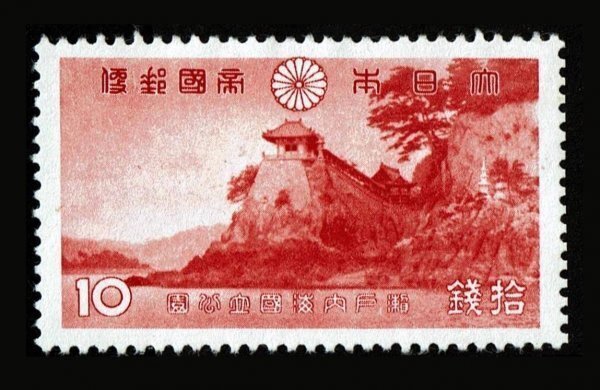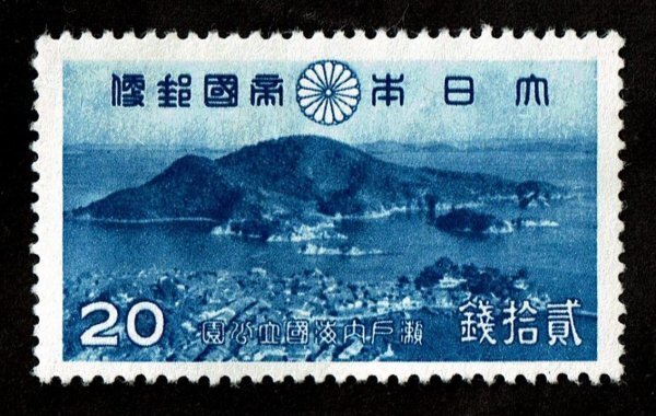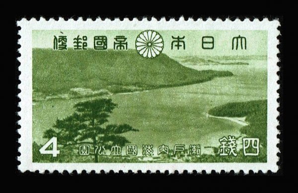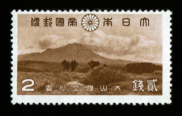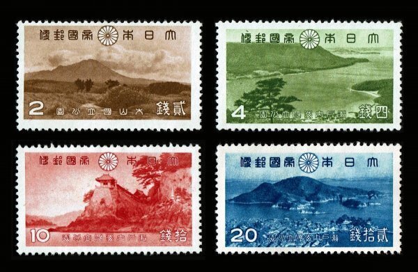N253■【糊落ち】1939年 第1次国立公園切手 大山・瀬戸内海 4種完■未使用・美品