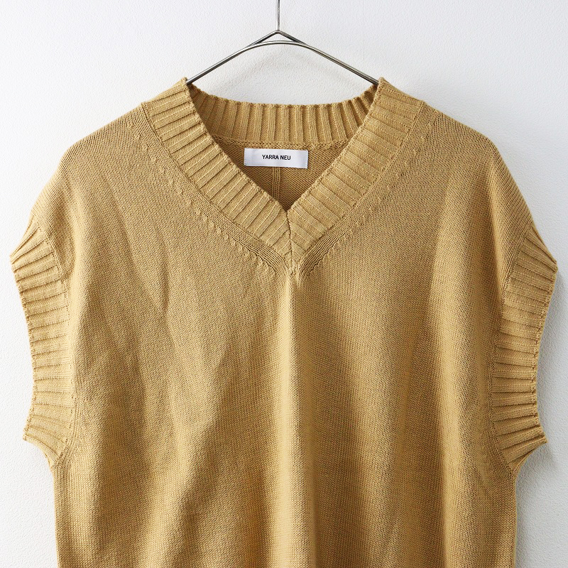 ヤラニュー YARRA NEU コットンVネックニットベスト F|ベージュ ノースリーブ トップス【2400014561845】