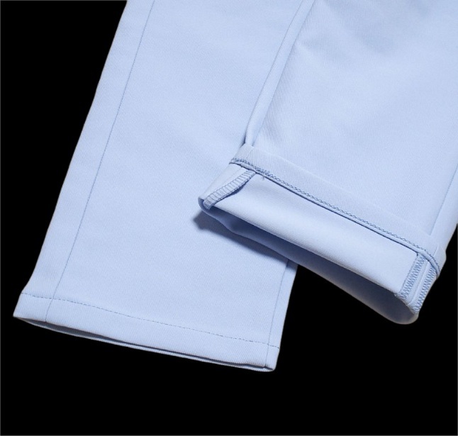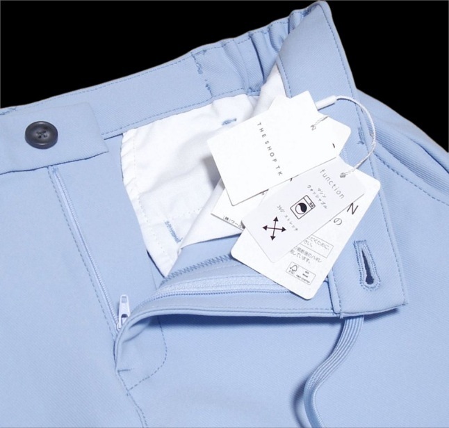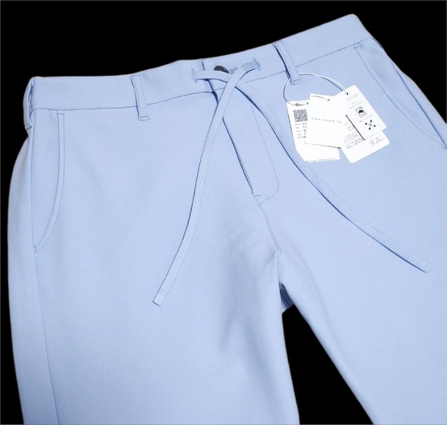 ◎フロント開閉はジップ仕様でボタンは1つ、表・裏面とも左右含めてポケットが計4つあります。ウエストは脇ゴム入りで2WAYドローコード(内側でも、外側でも使用可)。テーパードシルエットとなります。