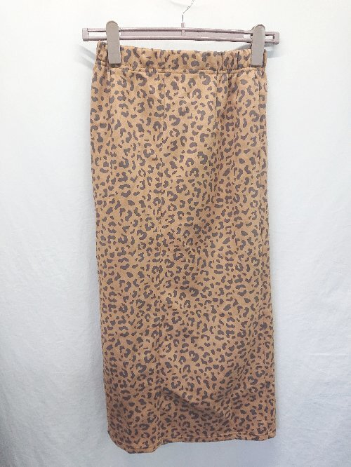 ◇ ⊇ RodeoCrowns スエード調 ヒョウ柄 スリット ロング丈 タイト スカート サイズFREE キャメル系 レディース E