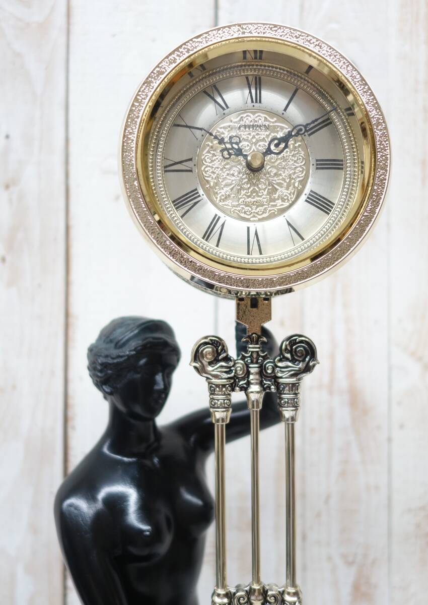 *レトロコレクション 昭和レトロ 当時物 *CITIZEN シチズン *SWING CLOCK 振り子時計 新栄光の女神像 クォーツ式置時計 *ブロンズタイプ ブロンズ色 |