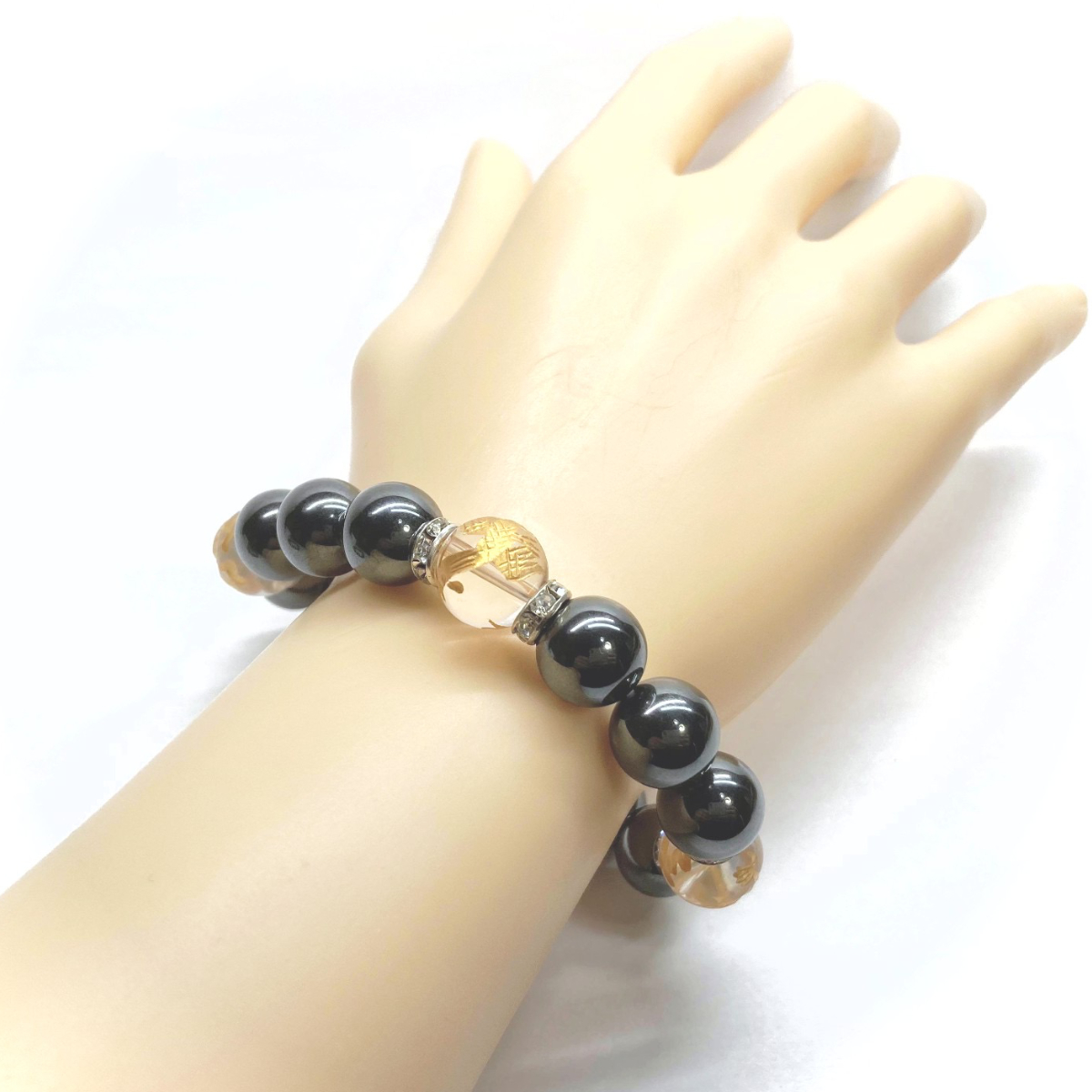 四神獣金彫水晶×ヘマタイト 12mm パワーストーン ブレスレット天然石 青龍 白虎 玄武 朱雀 運気上昇 お守り 金運 四神獸 四神相応 S