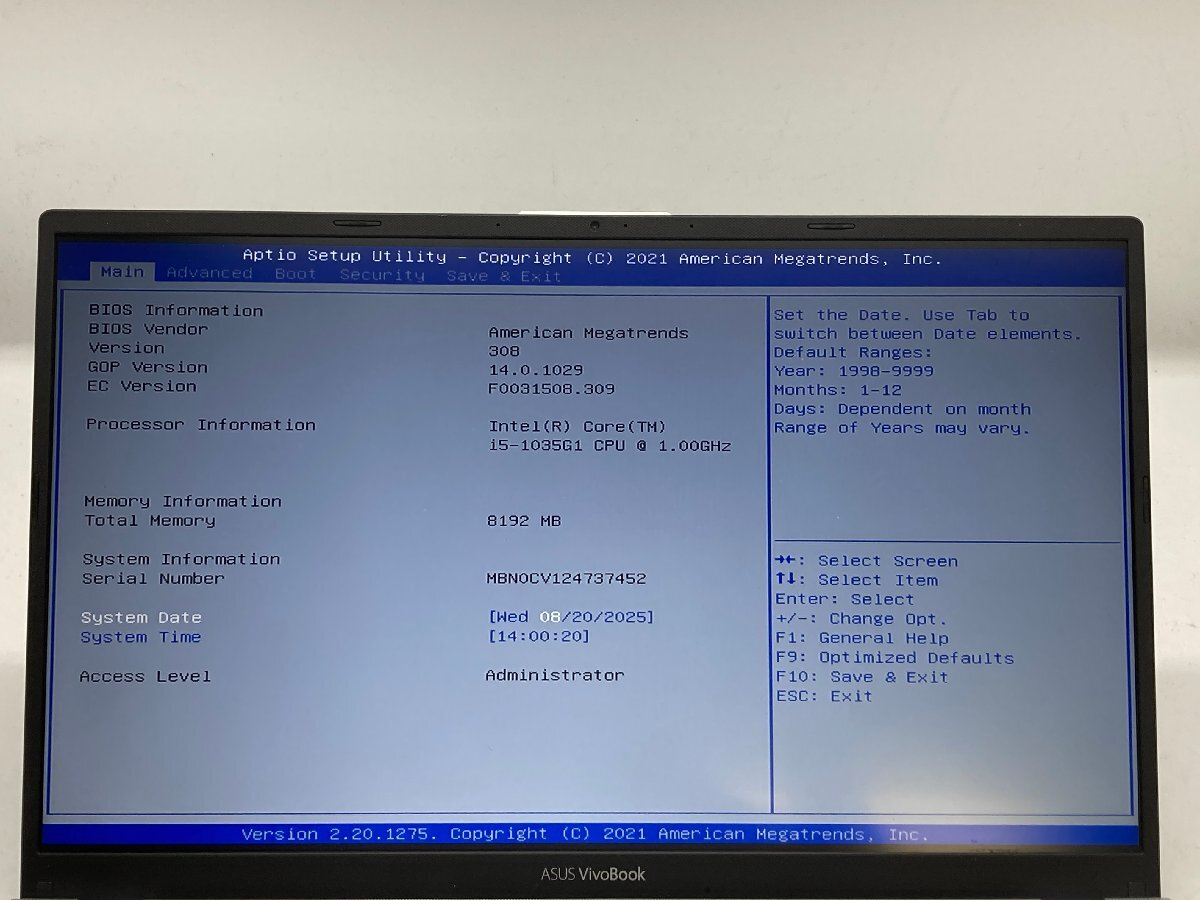 | CPU | Corei5-1035G1 | コアシール (プロダクトシール) |