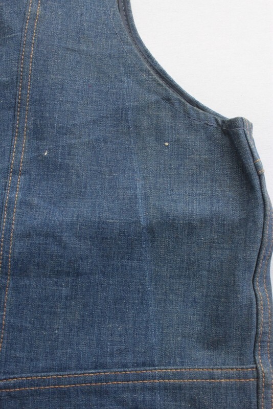 ■ブランド名 Lee ■商品名 デニムベスト ■色 インディゴ ■表記サイズ 40R ■実寸サイズ(cm) 肩幅/裄丈 35(肩先~肩先/後ろ側襟付け根~袖先) 身幅 48(脇~脇) 着丈 58.5(後ろ側襟付け根~裾) 多少の誤差はご了承ください。あくまで目安としてお考えください。 ■商品状態 未着用ですが保管汚れがあります。 未洗い状態なのでこのままでの出品になります。 ■コメント ラベル(タグ?)は無いですが紐が付いたままです。 70年代の頃のLeeのベストです。 MNL-0113 ・・・・・・・・・・・・・・・・・・・・・・・・・・・・・・・・・ ●素人採寸ですので、多少の誤差はご容赦ください。 ●中古商品の為、写真だけでは説明しきれていないモノや商品説明以外に見落としているキズなどある場合がありますが現状を優先させて頂きます。ご了承ください。 ●着用に問題があるレベルのものは記載しますが、保管&収納時に出来る折じわや畳みじわなど特に記載しません。基本的には写真にてご判断ください。 ●動作環境によって色合いや風合いが変わることもありますが現状を最優先させていただきます。 ●出品物のほとんどが海外で購入の古着になります。 ●古着特有の風合い(又はビンテージとしての価値)を損なう恐れがある為、基本的に当方ではクリーニング致しておりません。 古着特有の汚れ、匂いなど気になる方は御自身で洗濯クリーニングをお願いします。 ・・・・・・・・・・・・・・・・・・・・・・・・・・・・・・・・・ ■送料:全国一律¥880(※沖縄県への発送は出来ませんので入札されてお支払いされてもキャンセルいたします) 発送地について:商品の発送は代理業者(minikura)に委託している為、発送地は宮城県の寺田倉庫からの発送になります。 同日落札に限り最大120サイズまで同梱可能ですので薄手の物や小物などは複数落札すると送料がかなりお得になります。 | |||