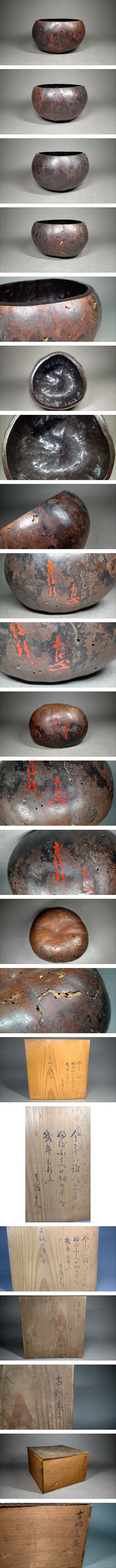 |  かなり古い瓢の炭斗で 了々斎によって直書きされており 三井家の号「前後軒」と朱書きされ 三井家の什器と思われます。 |