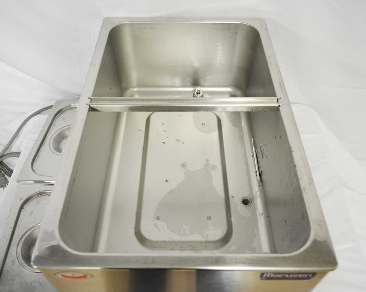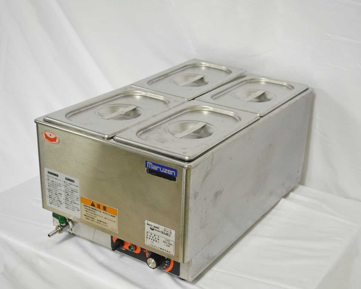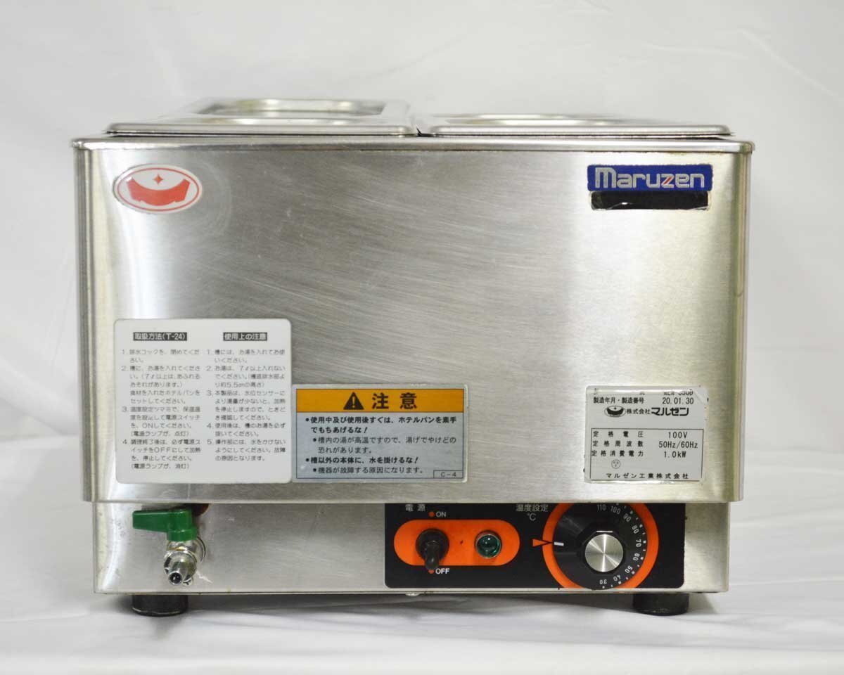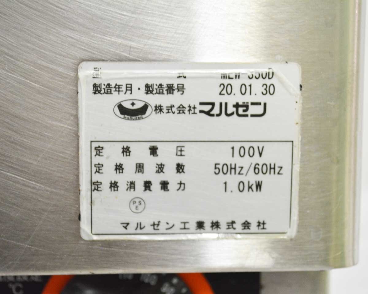 【 型 式 】 MEW-350D 【サ イ ズ】 幅350×奥行550×高さ260(mm) 【 重 量 】 約11.5kg 【 電力 】 単相100V 50/60Hz 【 定 価 】 112,000円(税抜) 【 年 式 】 2020年製 ・角型ホテルパン1/4(3.8L)×4 ・温度調性 サーモスタット:30~100℃ |