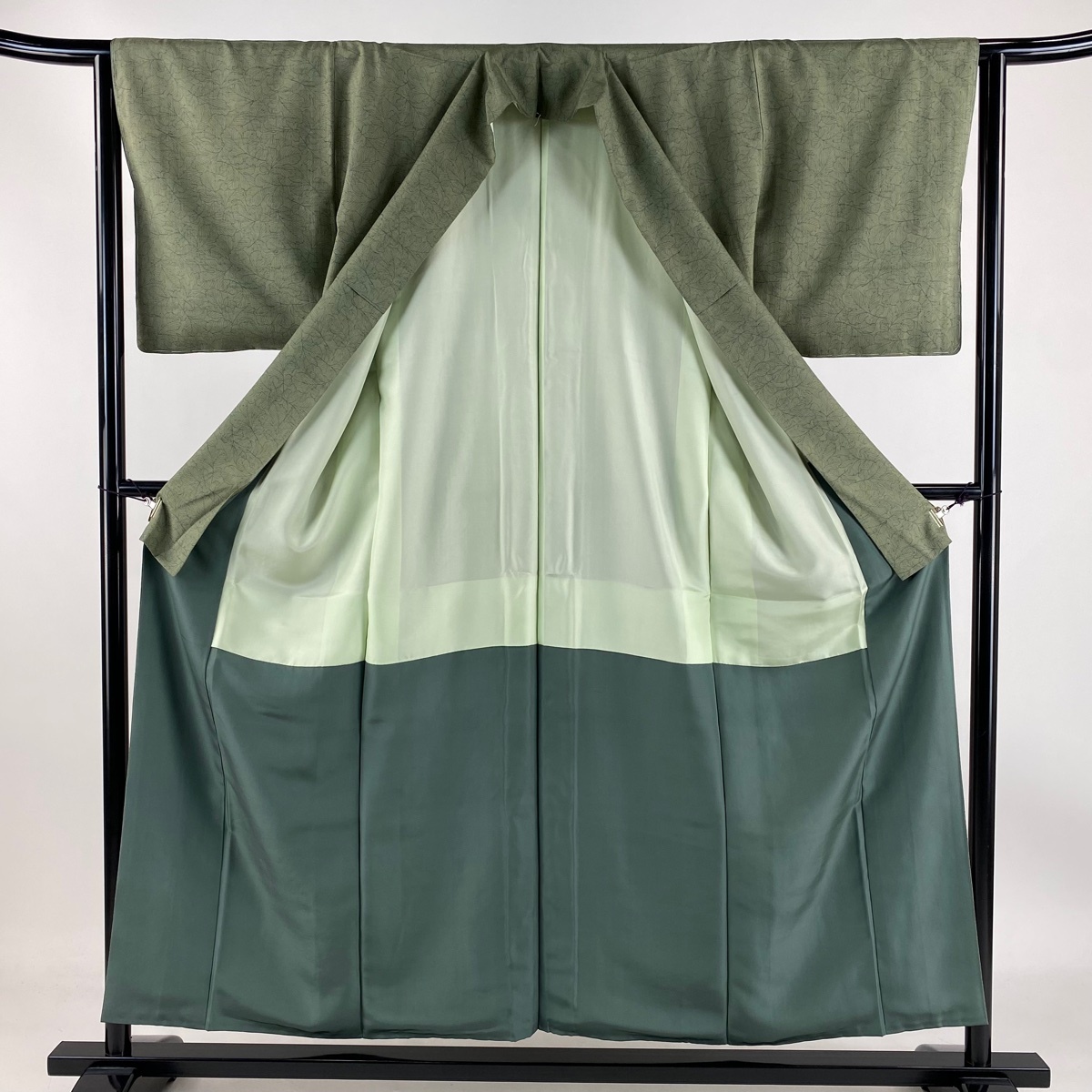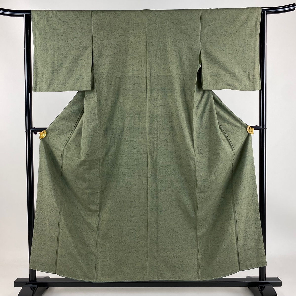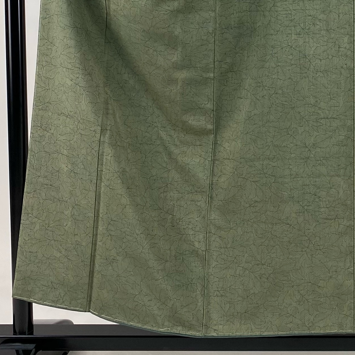 | 小紋 名品 紬地 葉柄 灰緑 袷 身丈155 裄丈63 S 正絹 【中古】 |