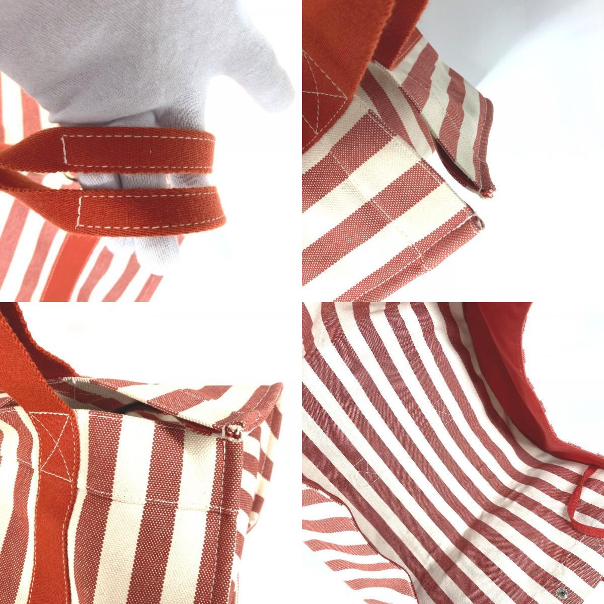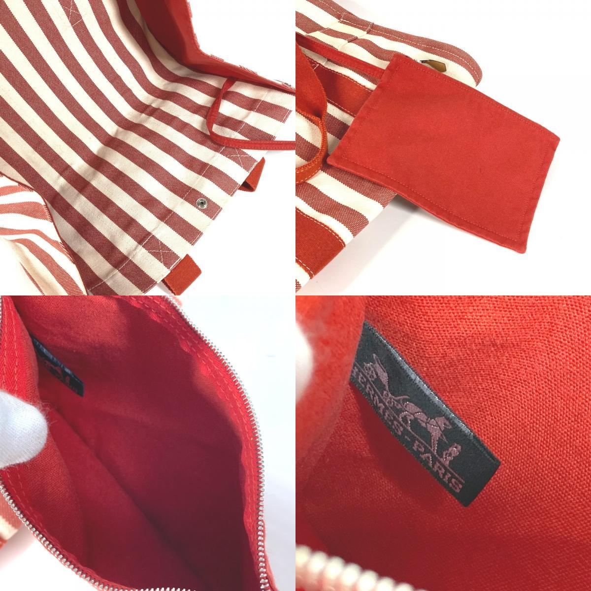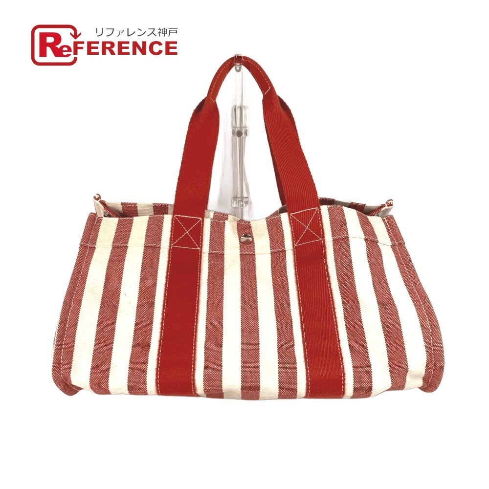 HERMES エルメス カンヌGM カンヌ GM ストライプ カバン トートバッグ ビーチバッグ ポーチ付き ハンドバッグ レッド ユニセックス【中古】