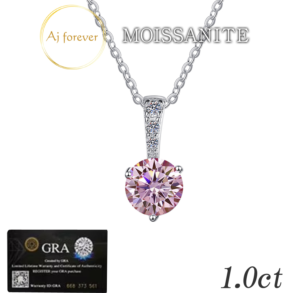 セット内容 | ・シルバー925 ピンク モアサナイト 1ct(中石) プチネックレス【Aj forever】 ・GRA保証書(モアッサナイト証明書) ・Aj forever ギャランティーカード ・Aj forever 宝石ケース ・Aj forever バッグ ・シルバーみがきクロス |