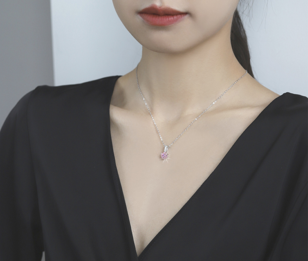商品名 | ピンク モアサナイト 1ct (中石)1粒 プチネックレス(SV925スターリングシルバー) |
