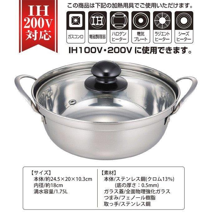 卓上鍋 18cm ガス IH対応 両手鍋 ステンレス 一人鍋 小鍋 アウトドア 鍋 シンプル 調理器具 キッチン 送料無料- 60N◇ 卓上こぶり鍋