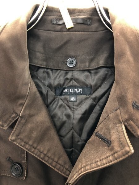 MICHEL KLEIN homme ミッシェルクラン メンズ 比翼ボタン ライナー付き コート 46 茶 コットン