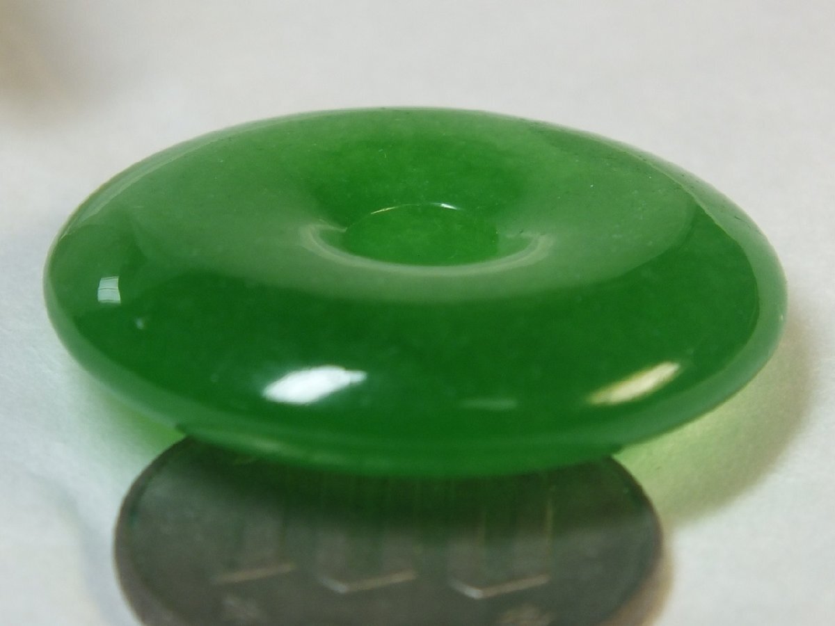 ▲商品説明▲ | サイズ:直径33×厚7mm 穴直径:約6mm 重さ:12.7g 緑色が綺麗なミャンマー翡翠。透明感の有る氷種(アイスジェダイト)です。可愛いサイズの平丸玉。オリジナルアクセサリー作り等に。 ☆商品につきましては注意を払った検品を行っておりますが、稀に石の表面にクラック状の筋や凹みが見受けられる場合が御座います。それは石本来の石紋で傷ではありません(割れが生じ易いヒビではありません)。返品の対象にはなりませんのでその旨御了承の上、ご検討下さい。 |